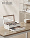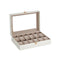 Horlogebox met 12 compartimenten, horlogekast, glazen deksel, 32 x 18,6 x 8,5 cm