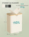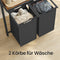 Wasmand met twee compartimenten en deksel, crèmewit en naturel beige 5 x 75 cm