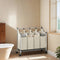 Wasmand met wielen, wasverzamelwagen 2 compartimenten, waswagen 69 x 29 x 81 cmWasmand met wielen, wasverzamelwagen 2 compartimenten, waswagen 69 x 29 x 81 cm