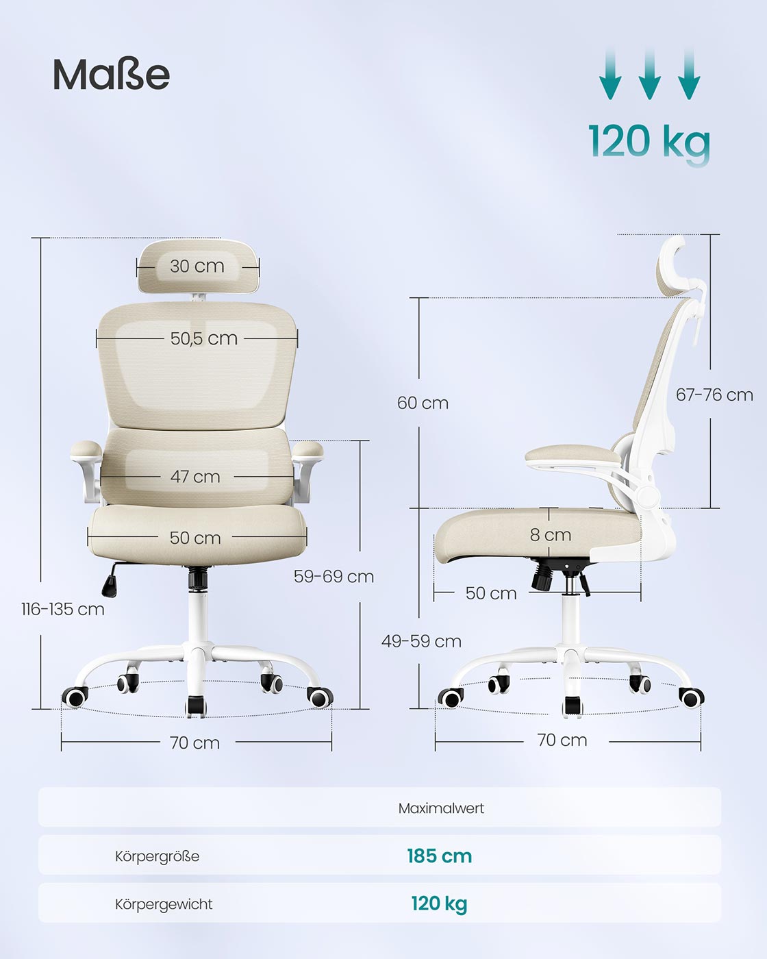 Ergonomische bureaustoel met mesh-stof en opklapbare armleuningen - OBN041L01