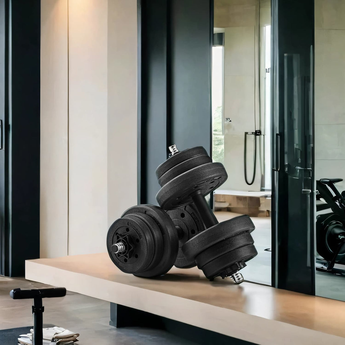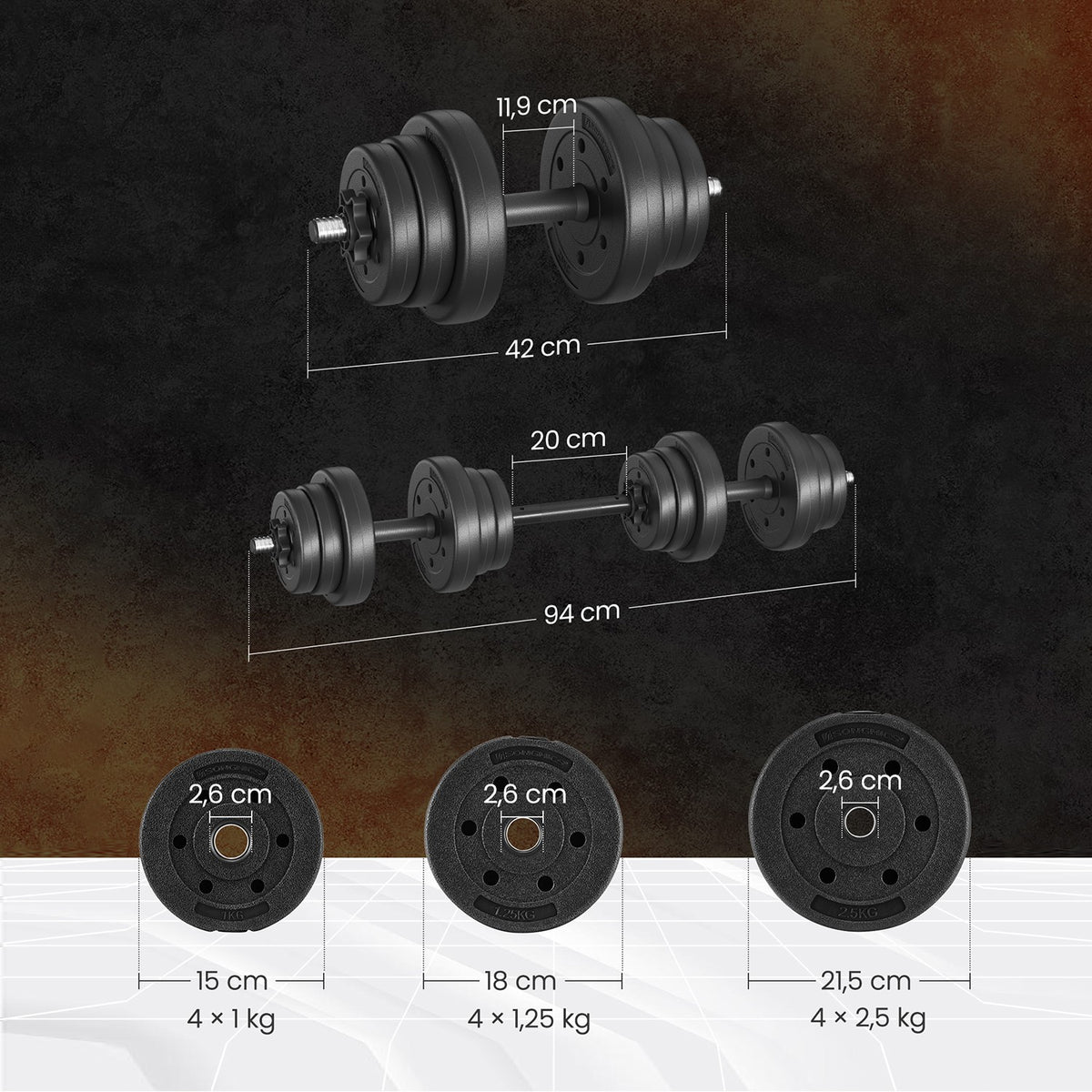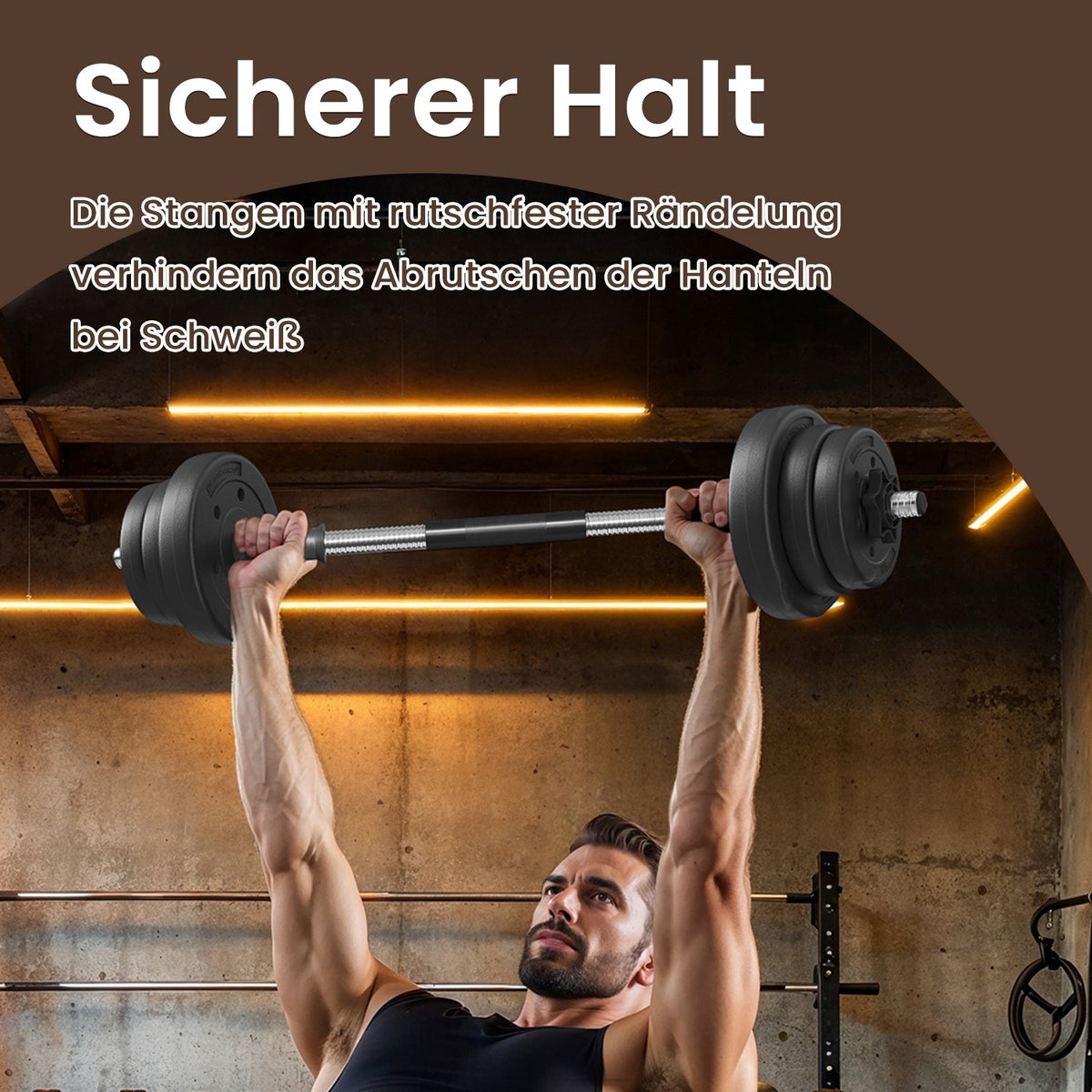 2-in-1 halters, halterset met verbindingsbuis van staal, 2 x 10 kg, inktzwart 94 cm