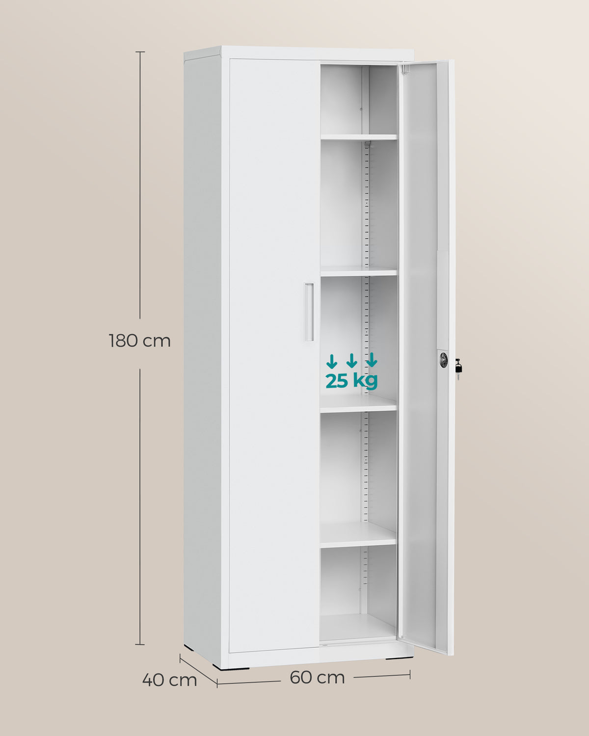 Archiefkast met dubbele deuren en 5 niveaus 40 x 60 x 180 cm