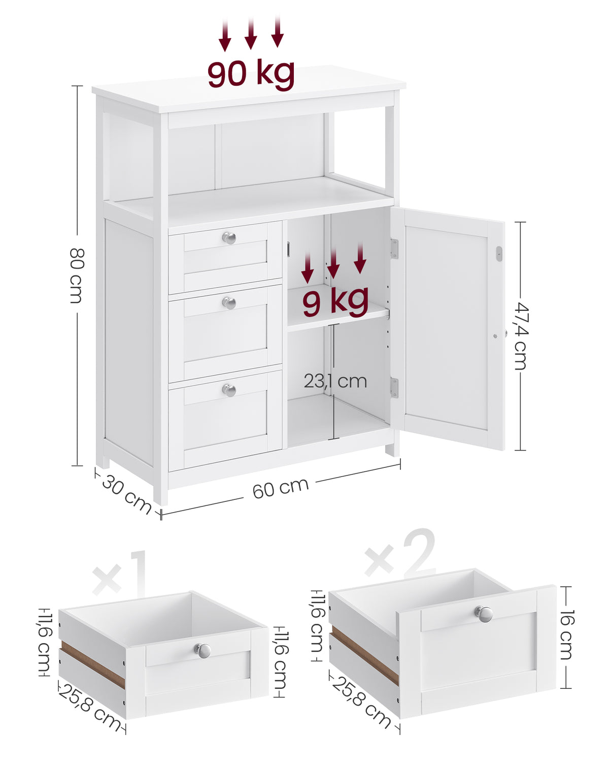 Badkamerkast 30 x 60 x 80 cm met 3 lades