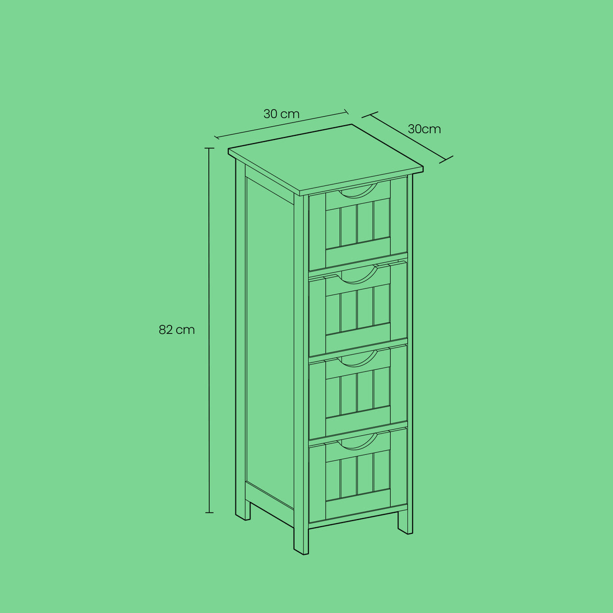 Badkamerkast, badkamerkast, zijkast met 4 lades 30 x 30 x 82 cm - LHCB35040C02