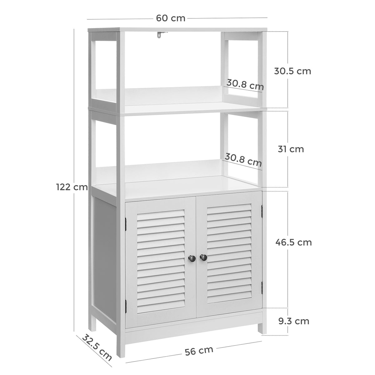 Badkamerkast met open vakken 5 x 122 cm