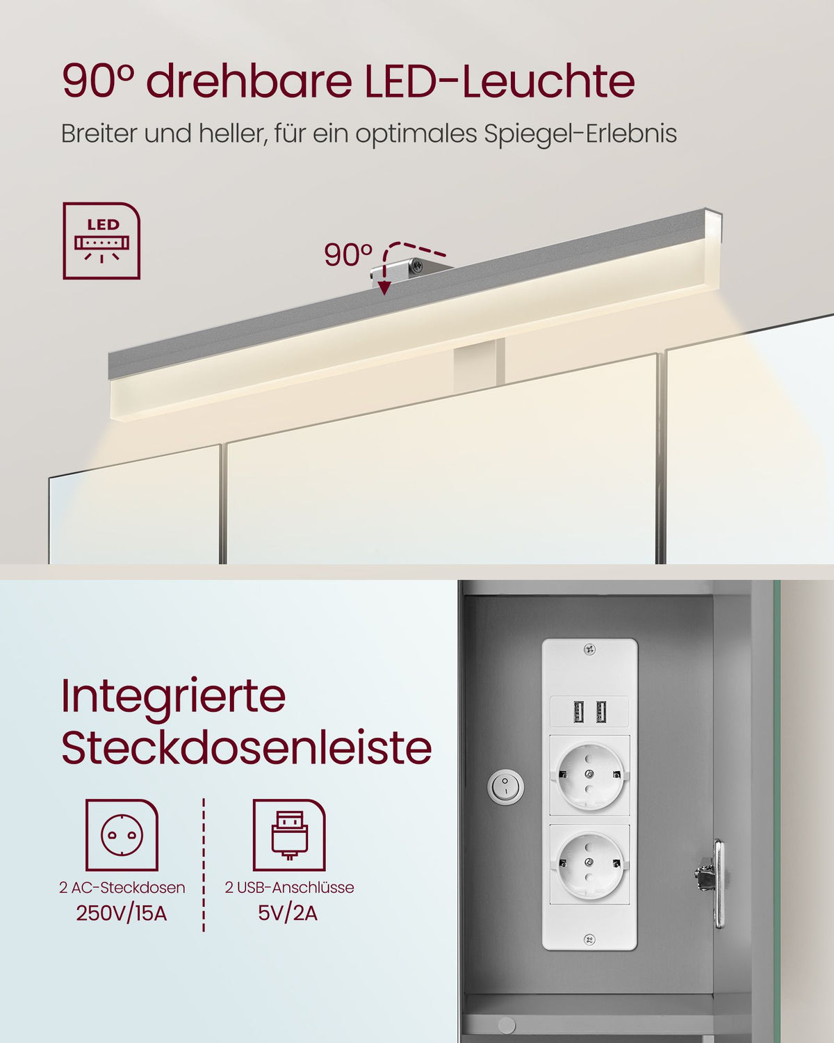 Badkamermeubel met stopcontacten en 3 deuren, wolkenwit-duifgrijs 5 x 70 x 75 cm