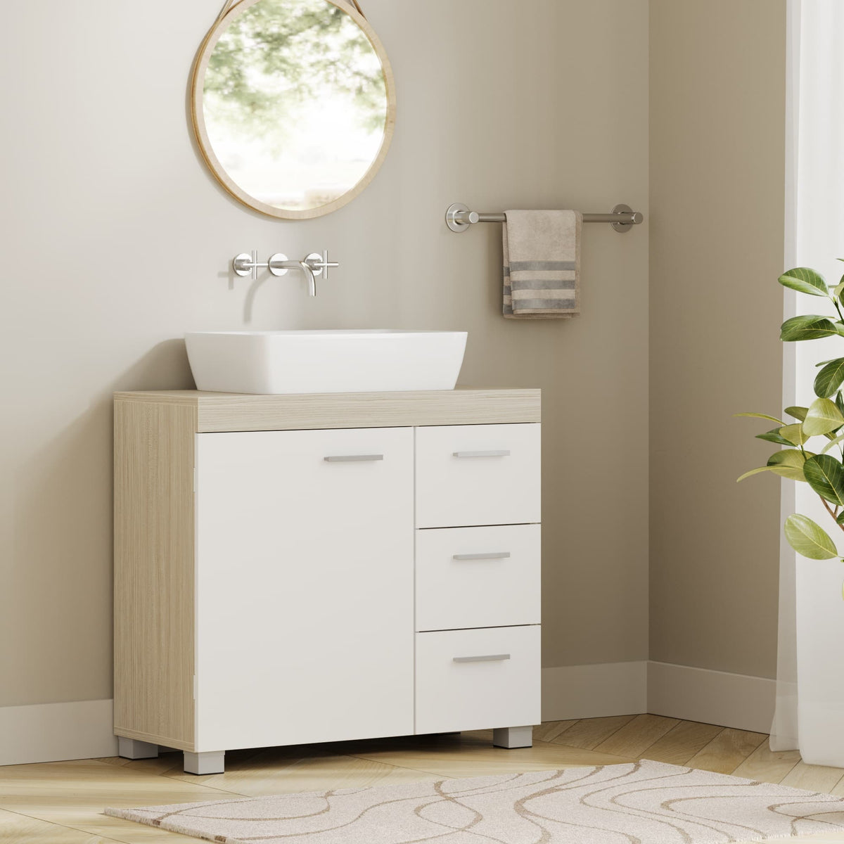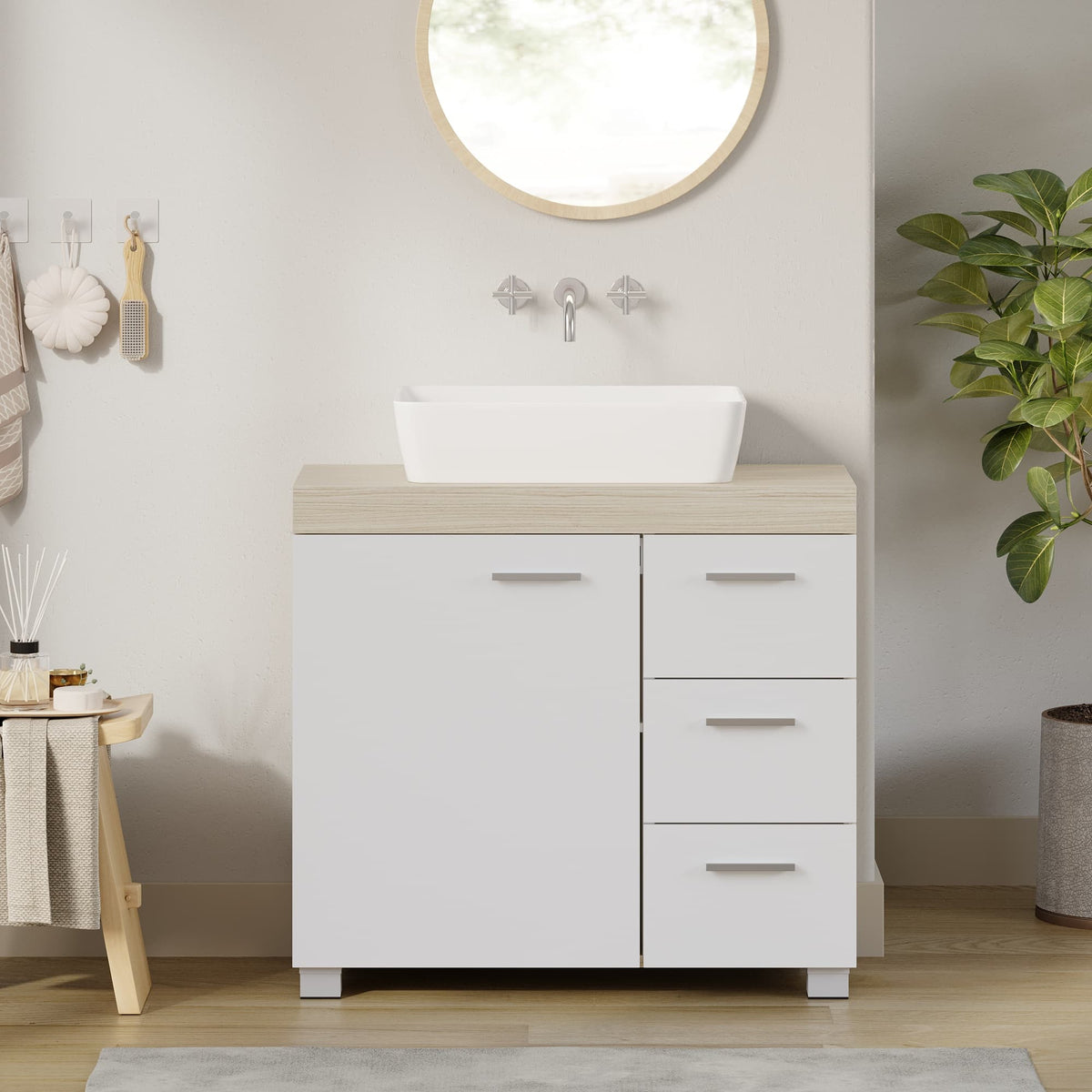 Badkamermeubel, wastafelmeubel, 3 grote lades 30 x 70 x 64 cm - BBKB35503K01