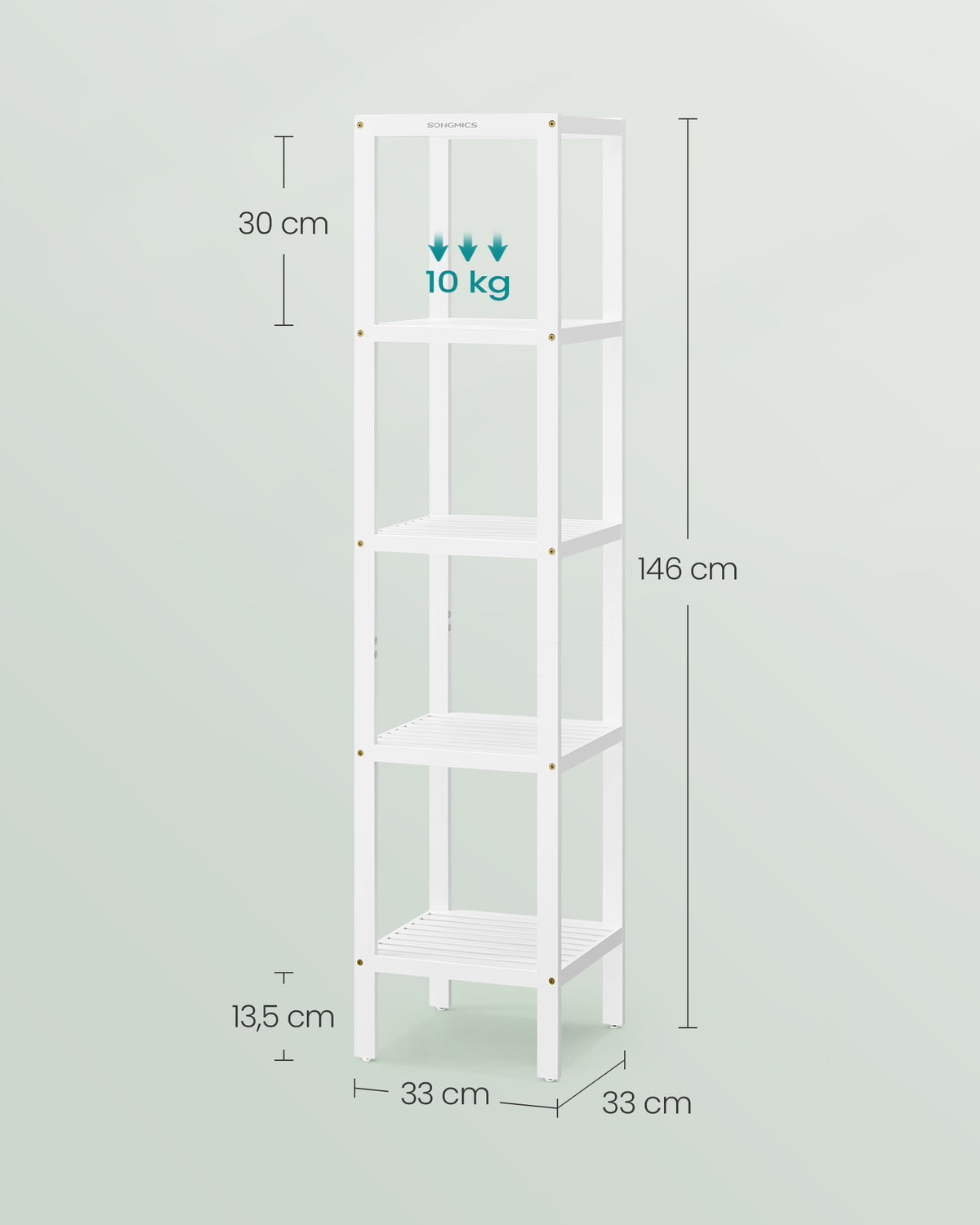 Badkamerplank smal met 5 niveaus wolkenwit 33 x 33 x 146 cm