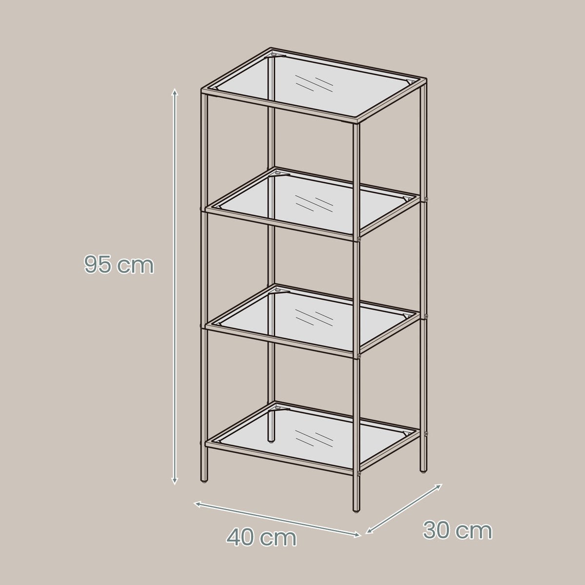 Badkamerplank van gehard glas met 4 niveaus 40 x 30 x 95 cm
