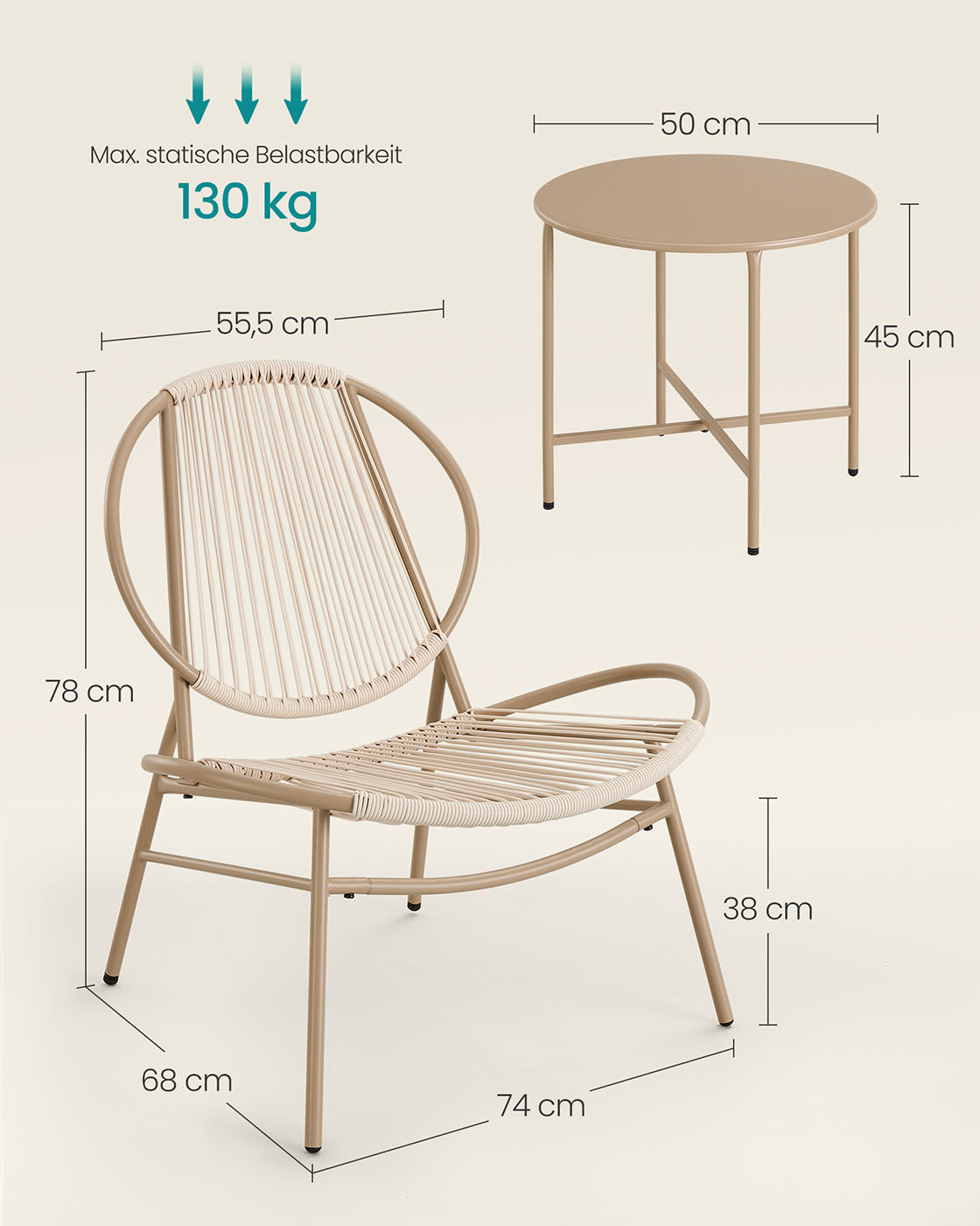 Balkonmeubelset met tafel en 2 stoelen kameelbruin 50 cm - GGF021K01