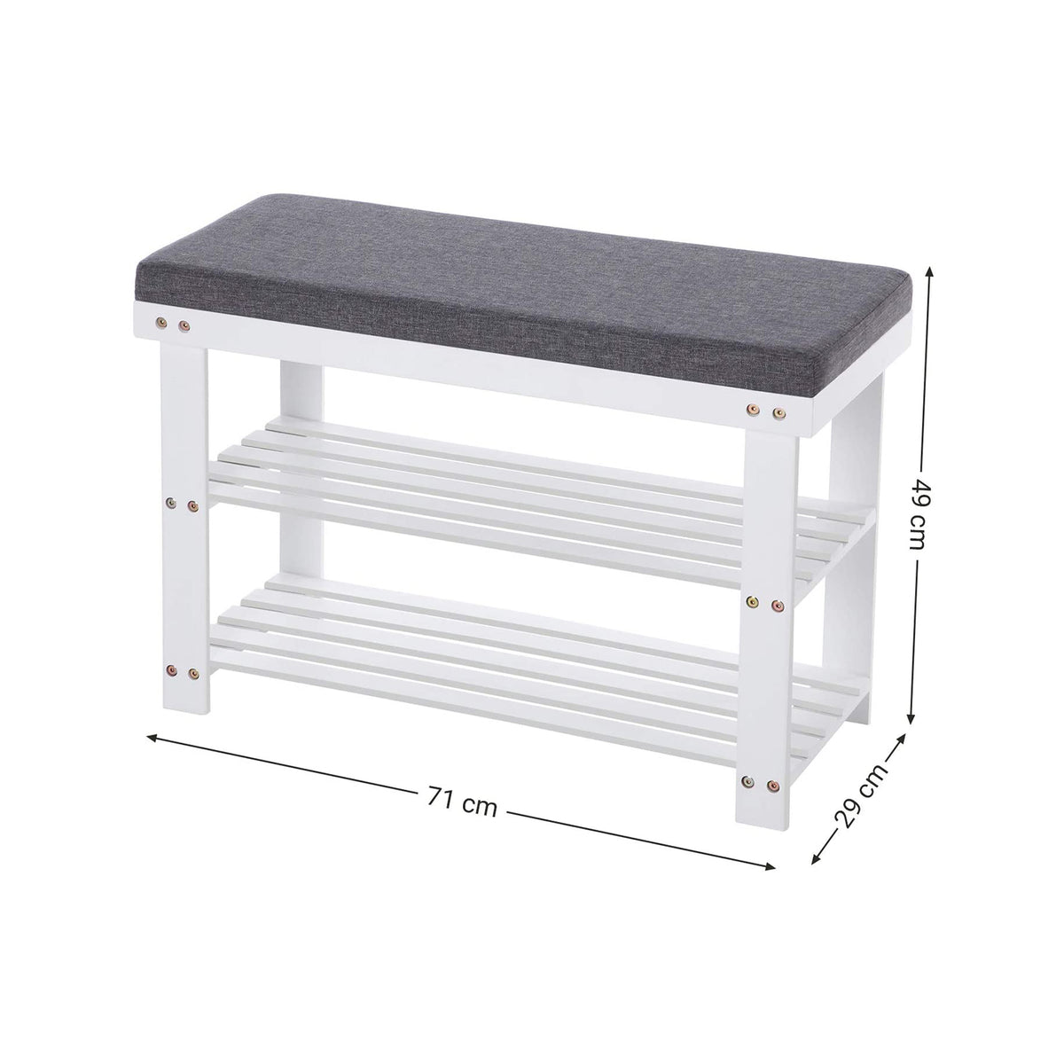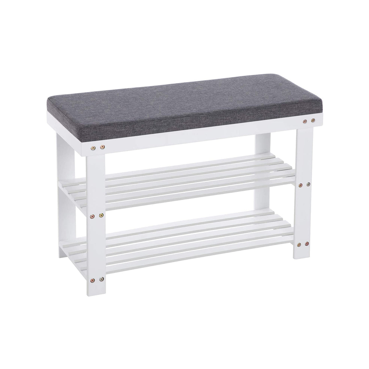 Bamboe schoenbank witgrijs 71 x 29 x 49 cm