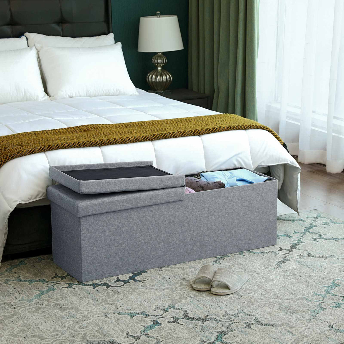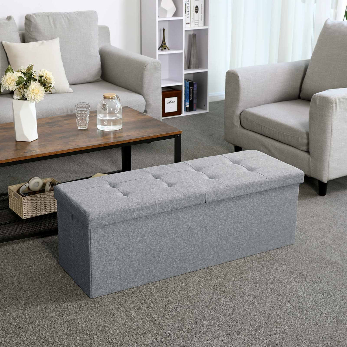Bank met scharnierend deksel 110 cm lichtgrijs