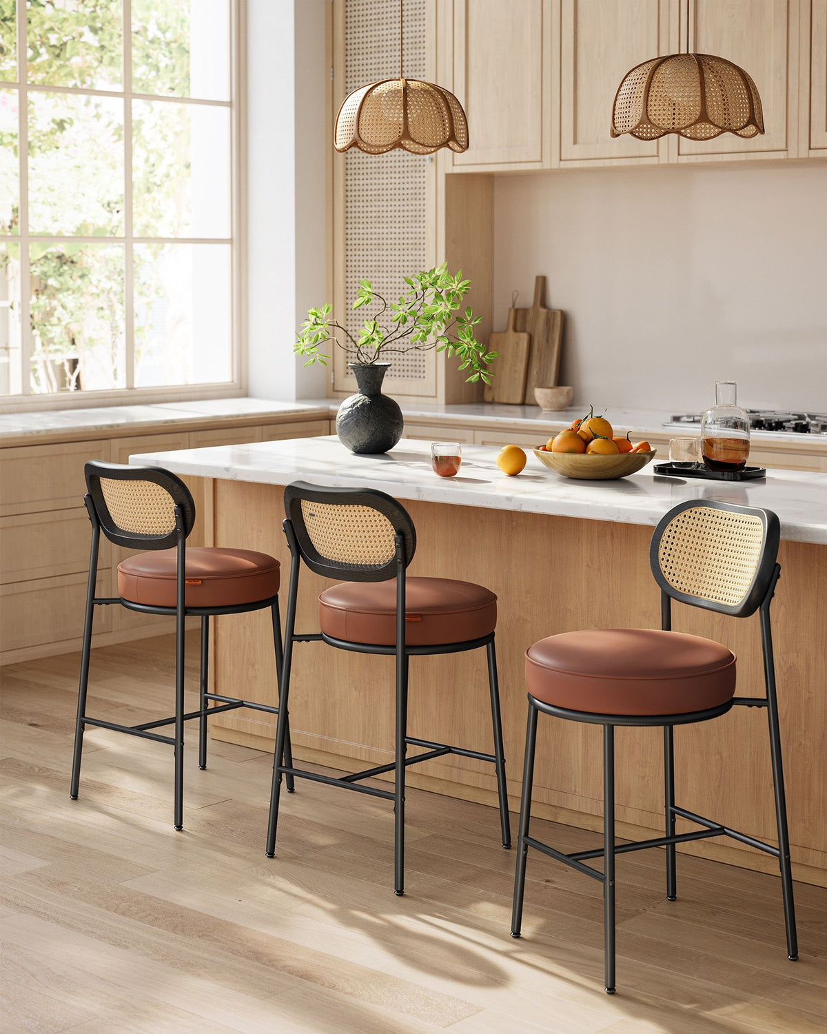 Barkruk 2 stuks hoge kruk voor keukenontbijt met gebogen rugleuning 7 x 92 cm - LBC087K01
