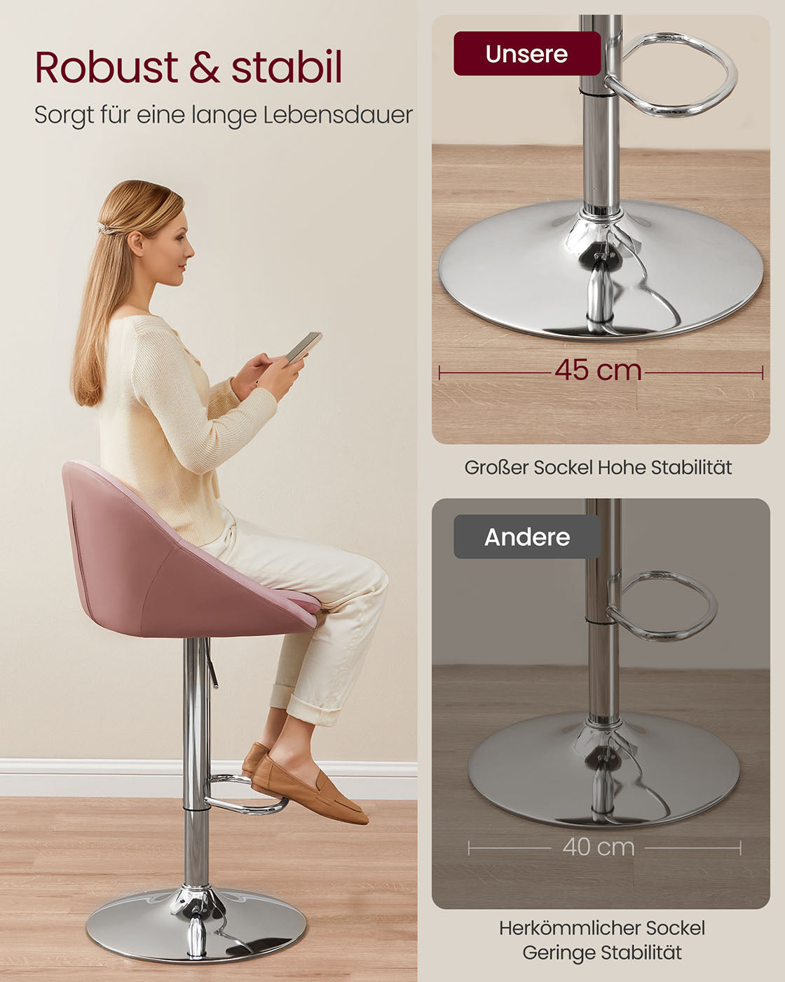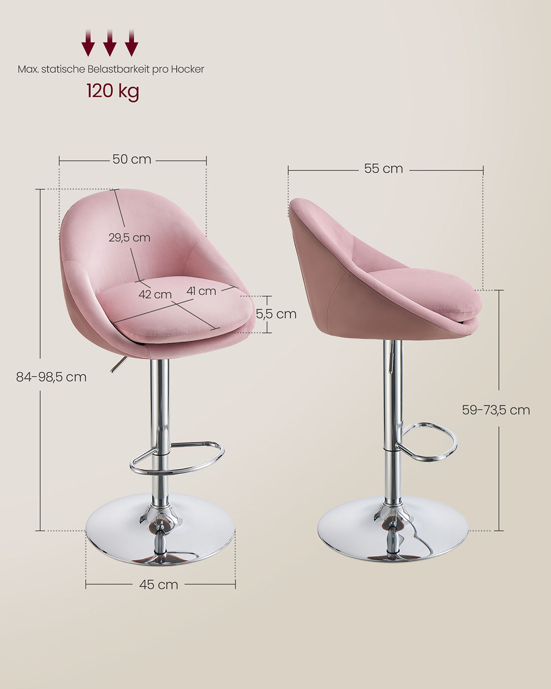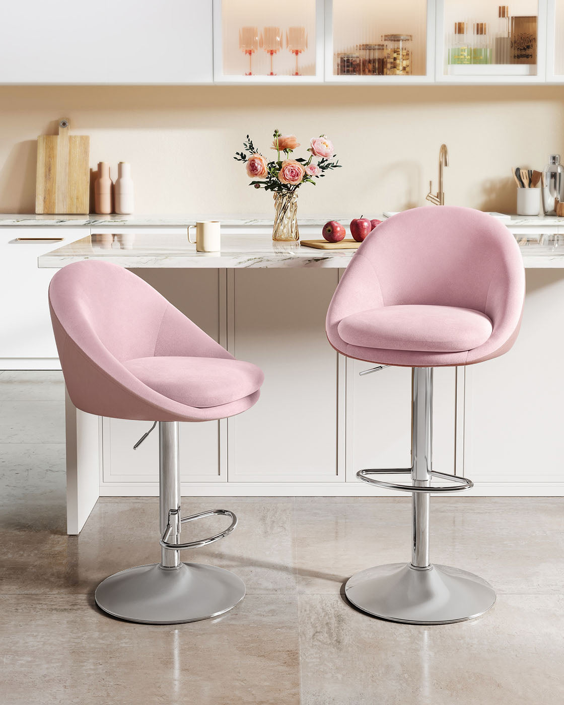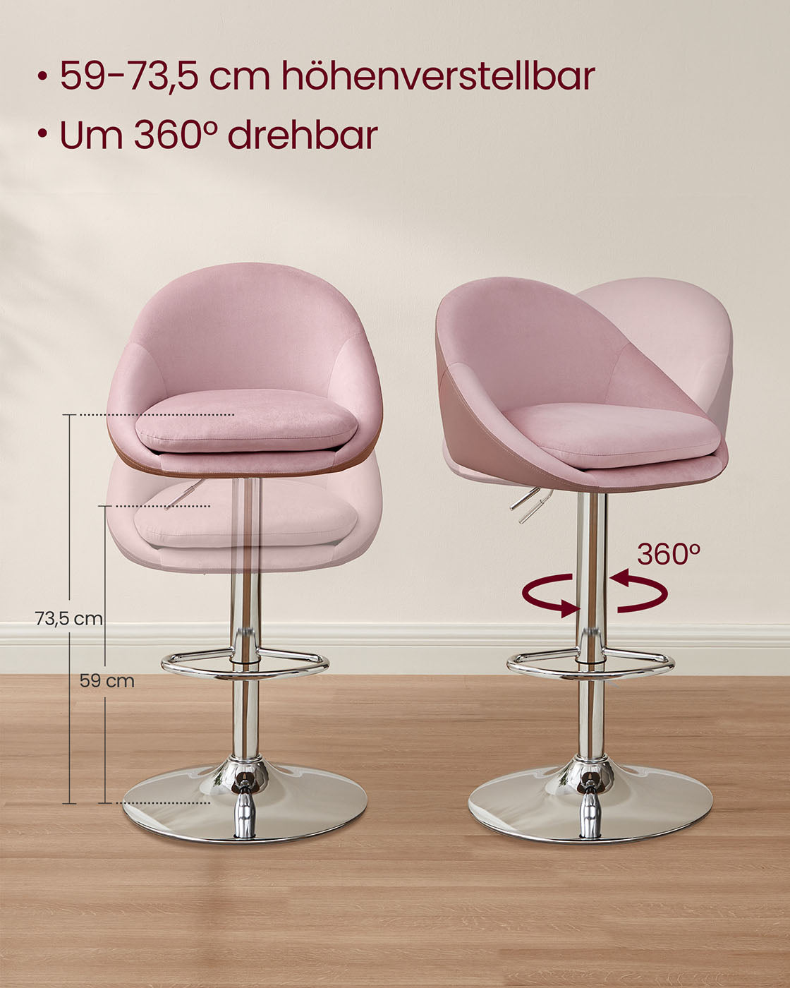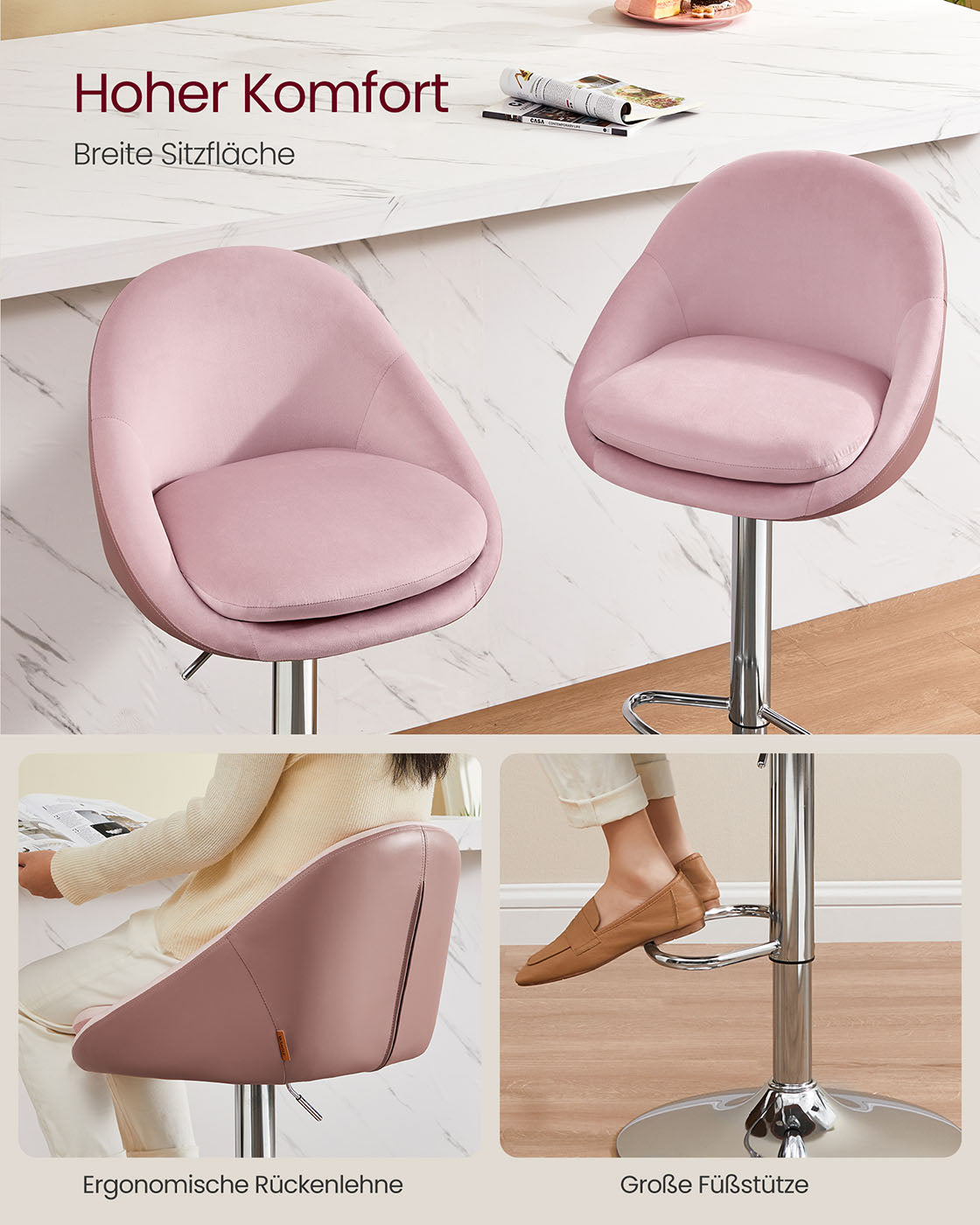 Barkruk set van 2, in hoogte verstelbaar, pastelroze-zilvergrijs 5 cm