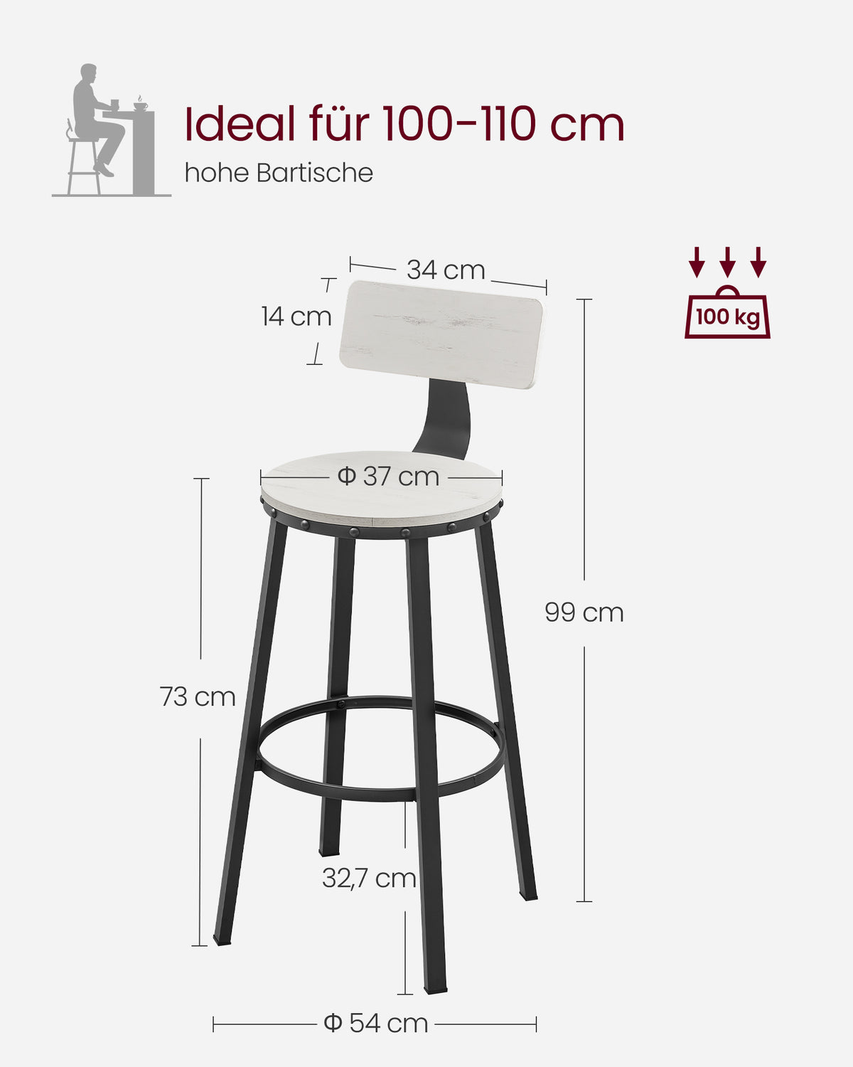 Barkrukken set van 2 industrieel design vintage wit-zwart 2 cm
