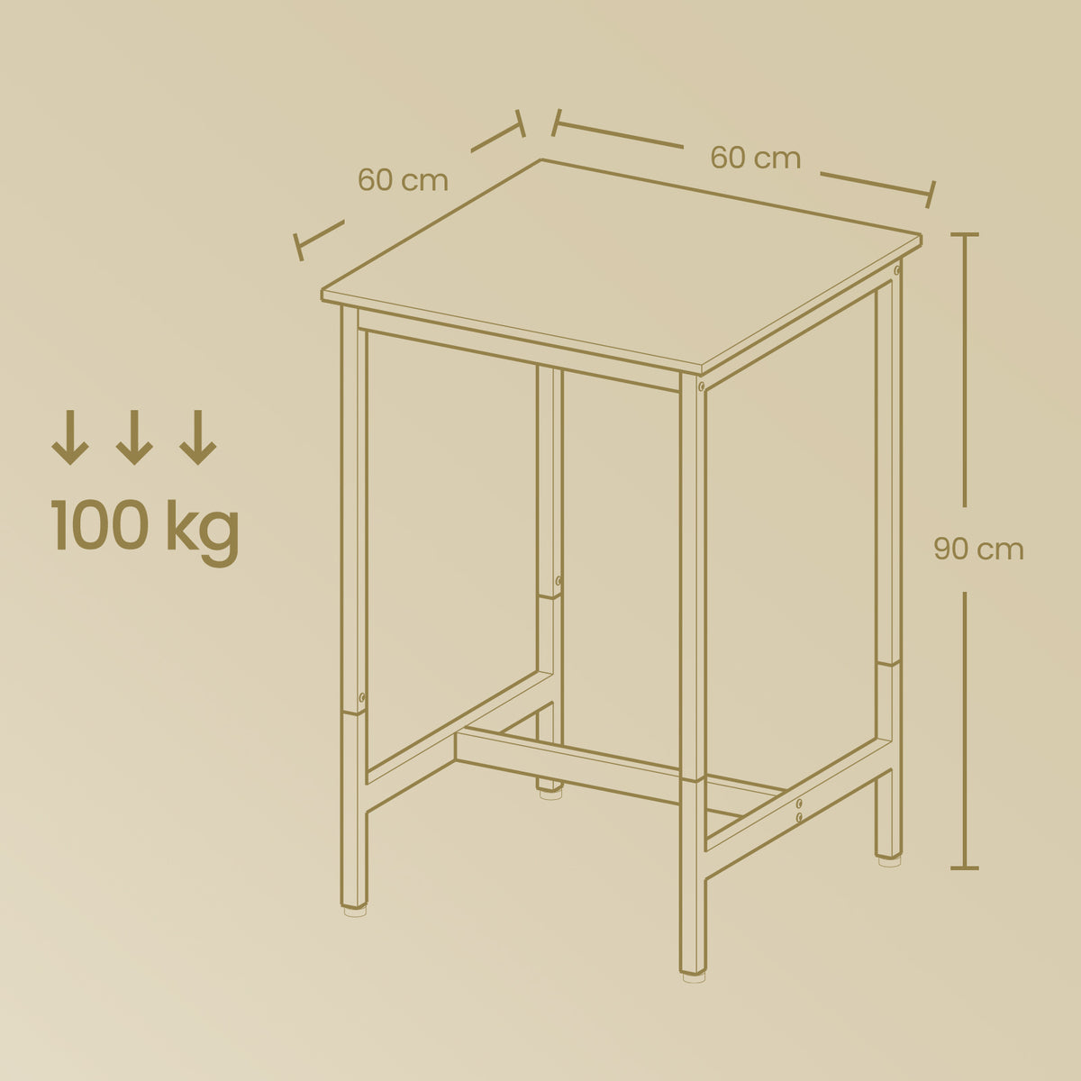 bartafel, keukentafel, hoge tafel 60 x 60 x 92 cm - LBTB35025W09