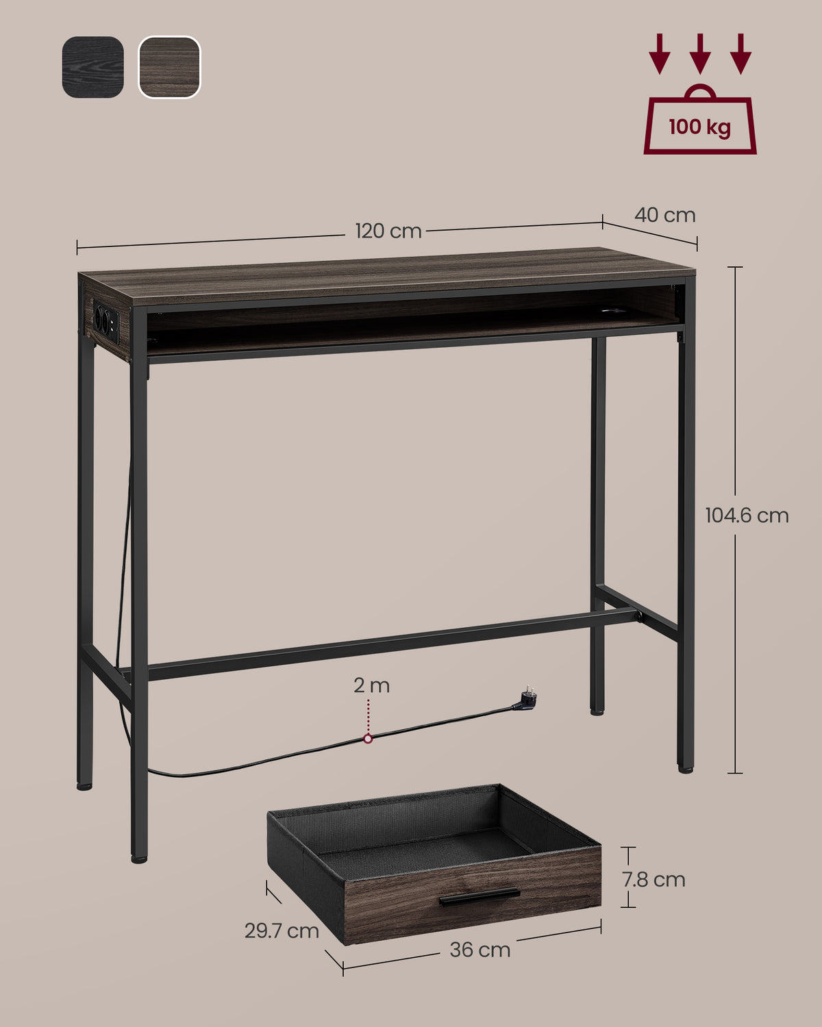 Bartafel met lade 40 x 120 x 104,6 cm asbruin