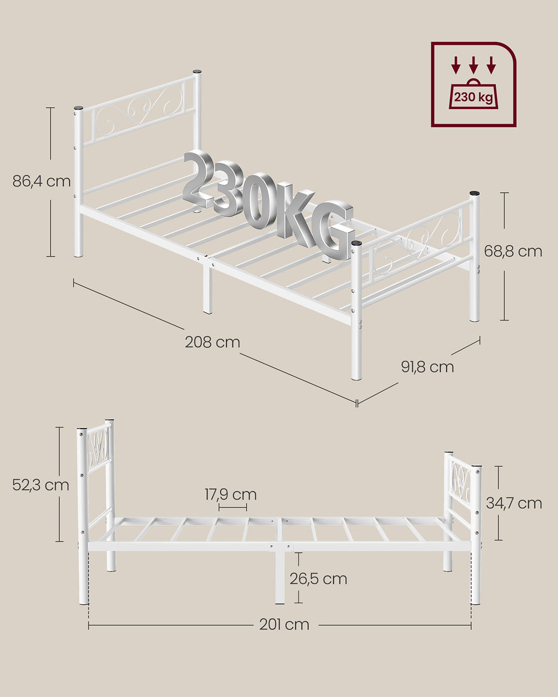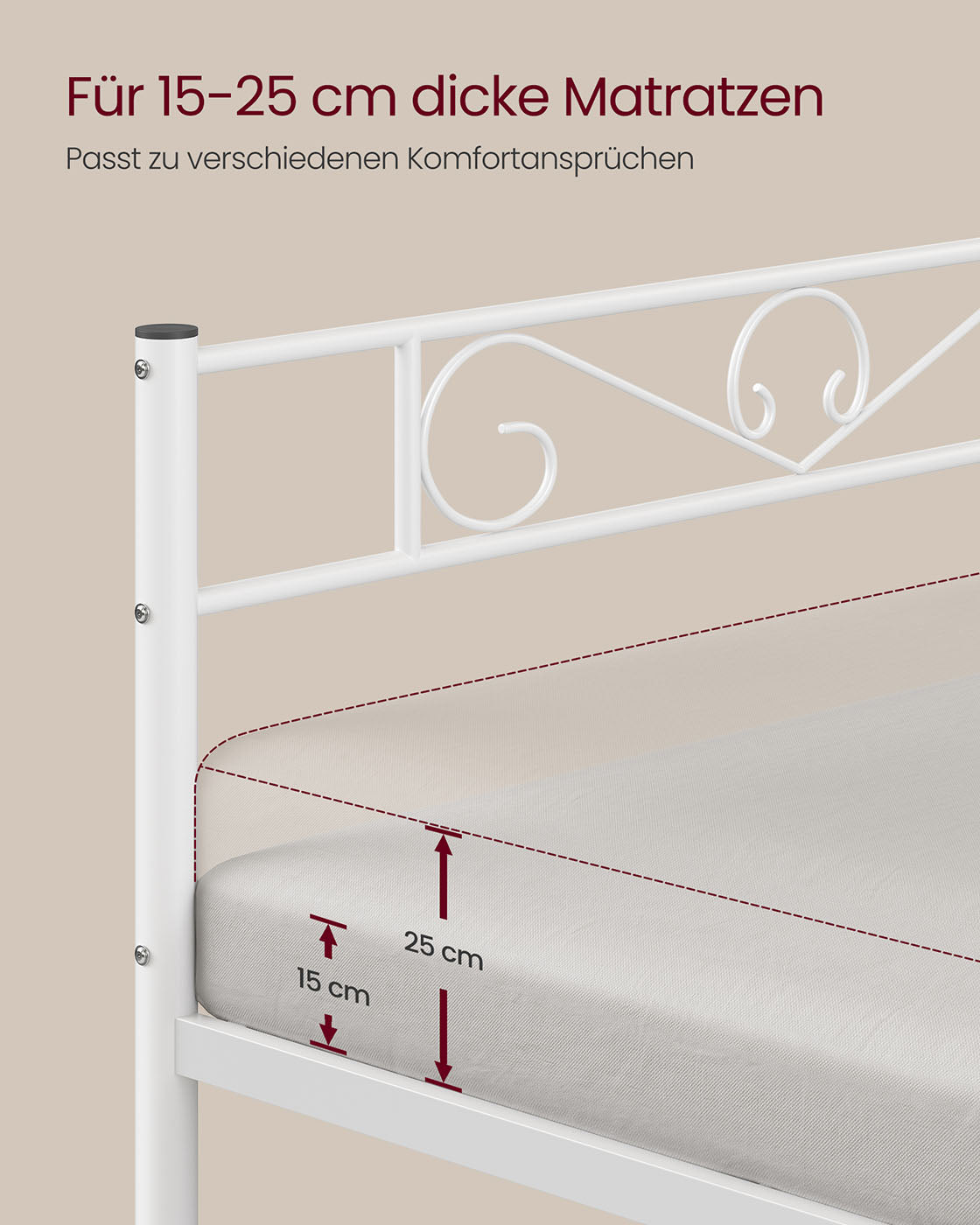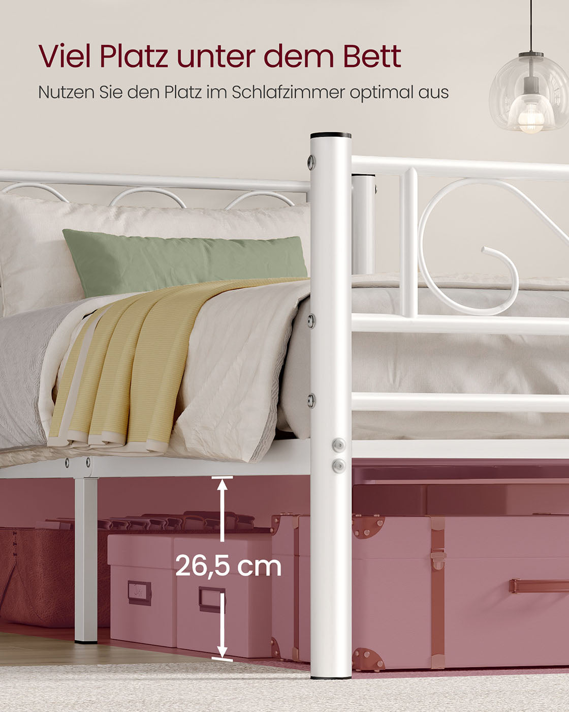 Bed 90 x 200 cm van metaal, eenvoudige montage, mat wit