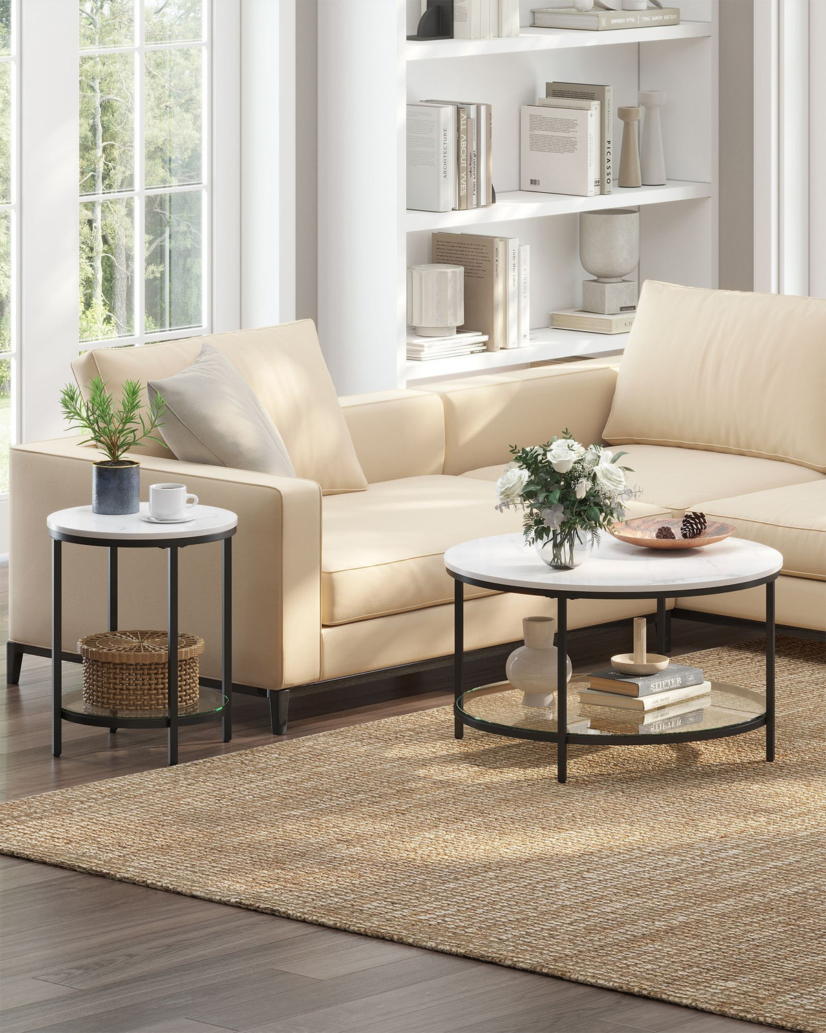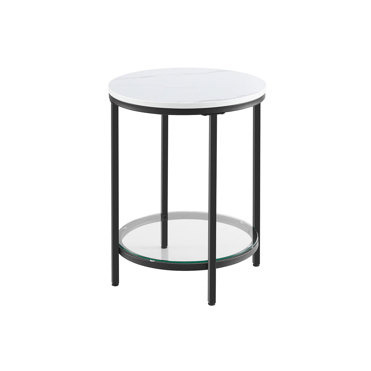 Bijzettafel 2 niveaus in witte marmerlook met zwart frame 45 x 55 cm - B34LET285B13