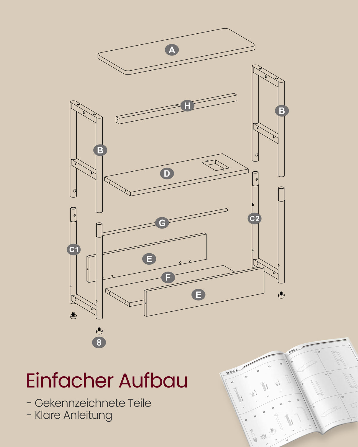 Bijzettafel met 3 planken, smal, crèmewit 18 x 45 x 58 cm