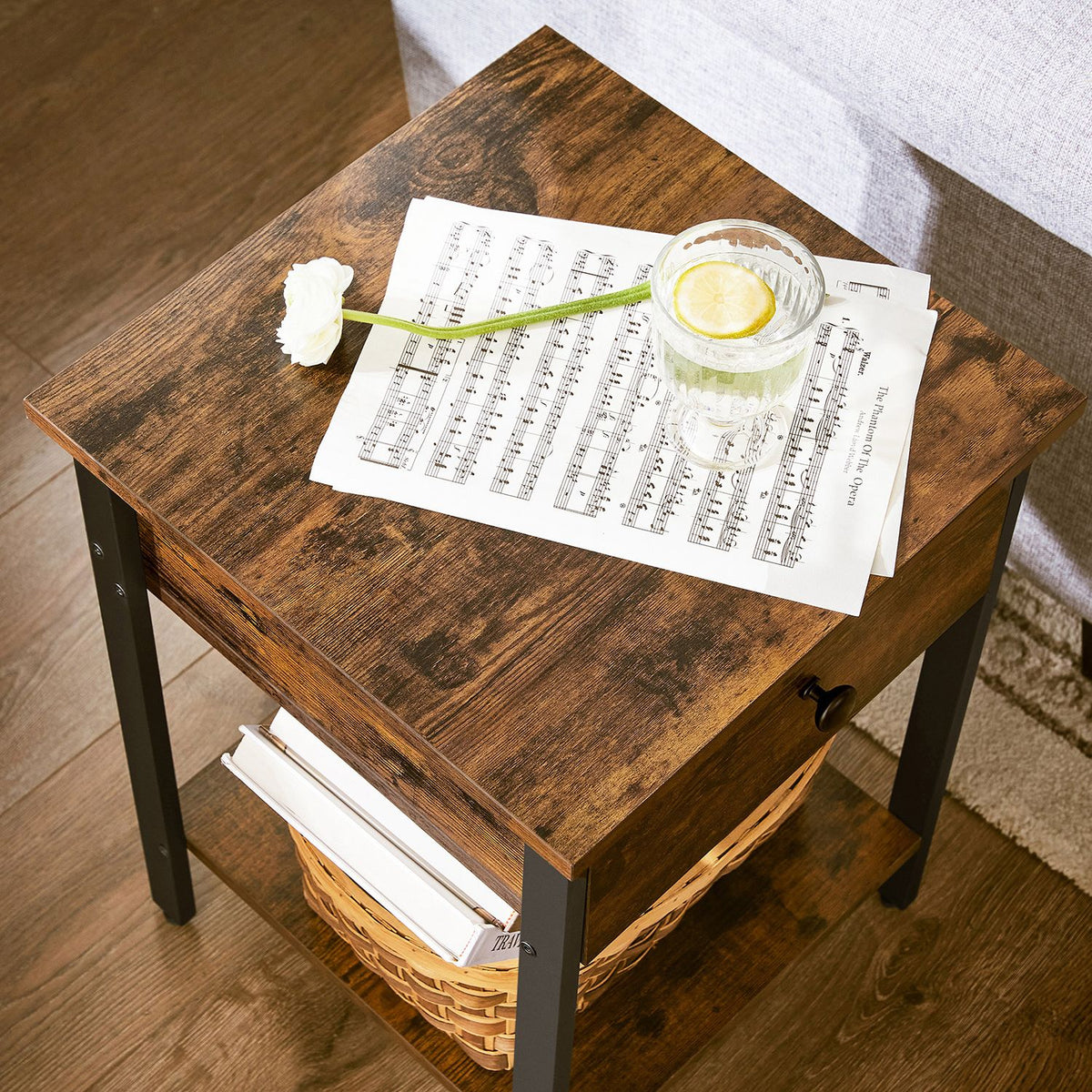 Bijzettafel met lade industriële look 40 x 40 x 55 cm