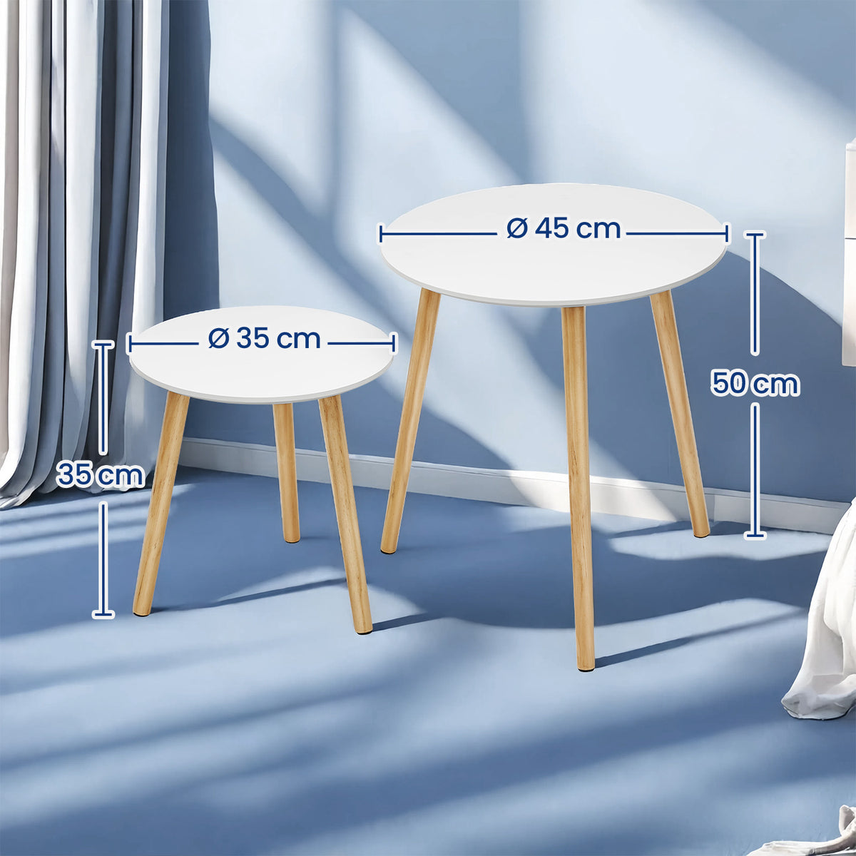 Bijzettafelset rond, 2 moderne salontafels, minimalistisch 45 cm