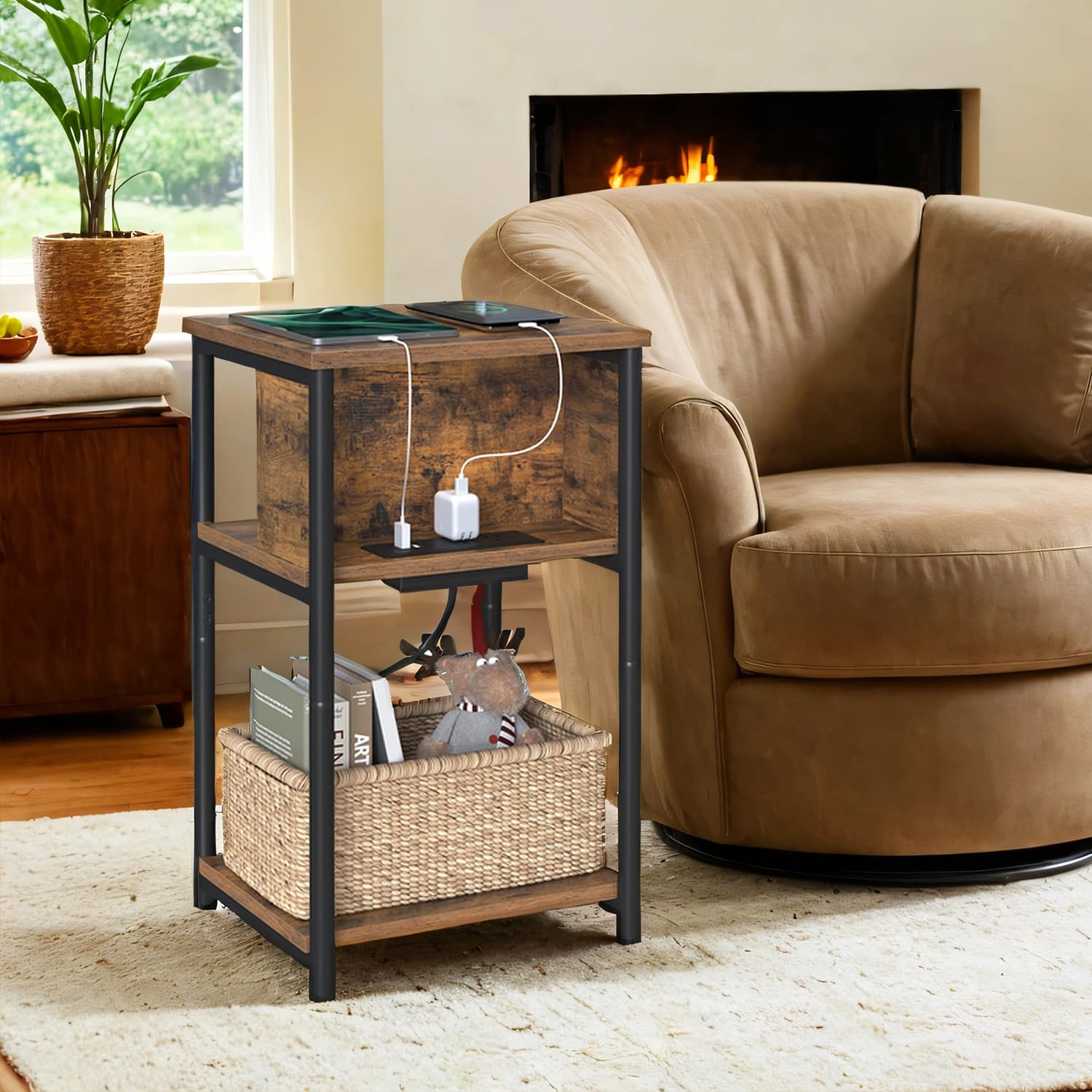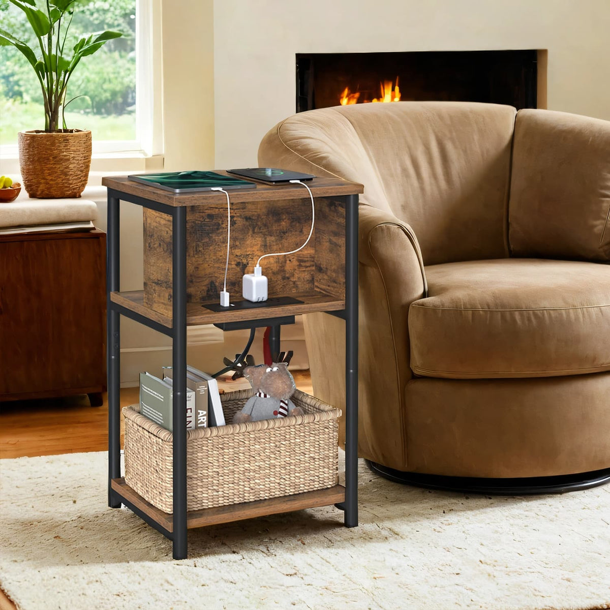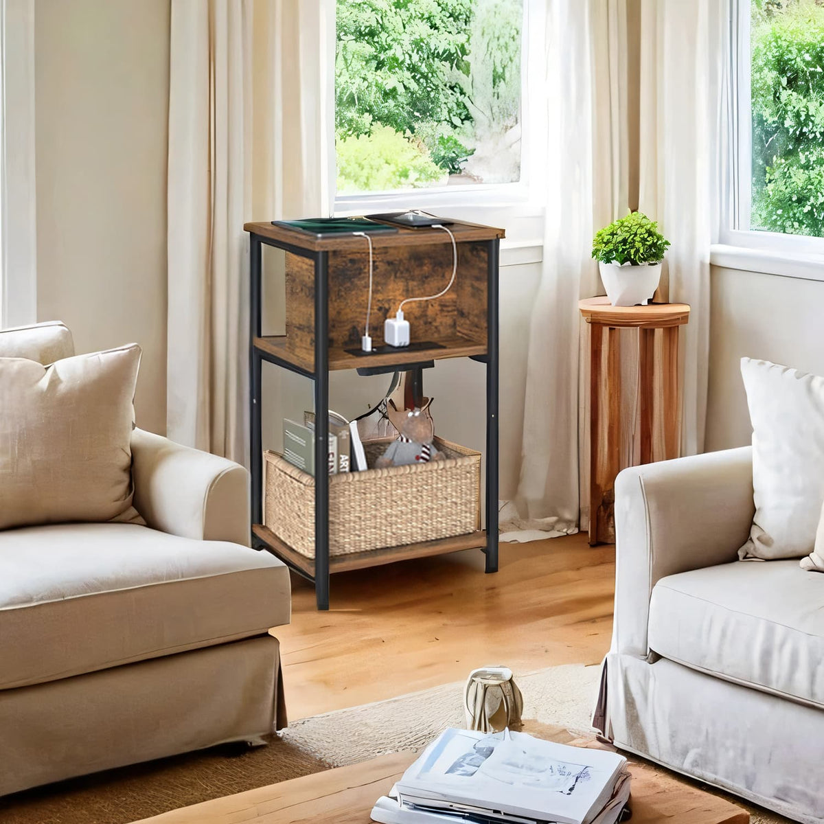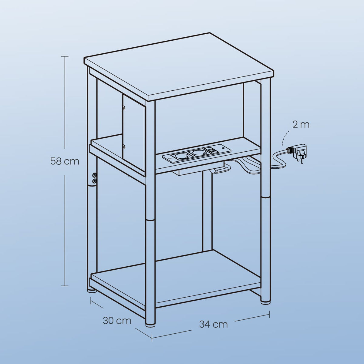 Bijzettafeltje, klein nachtkastje met stekkerdoos, smal 30 x 34 x 58 cm