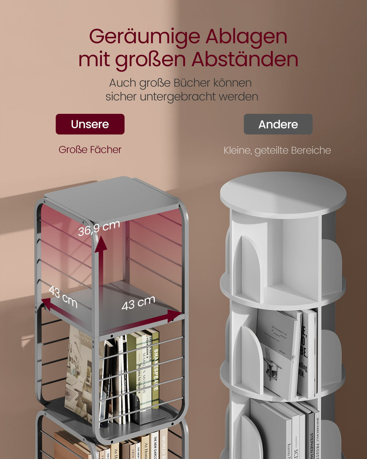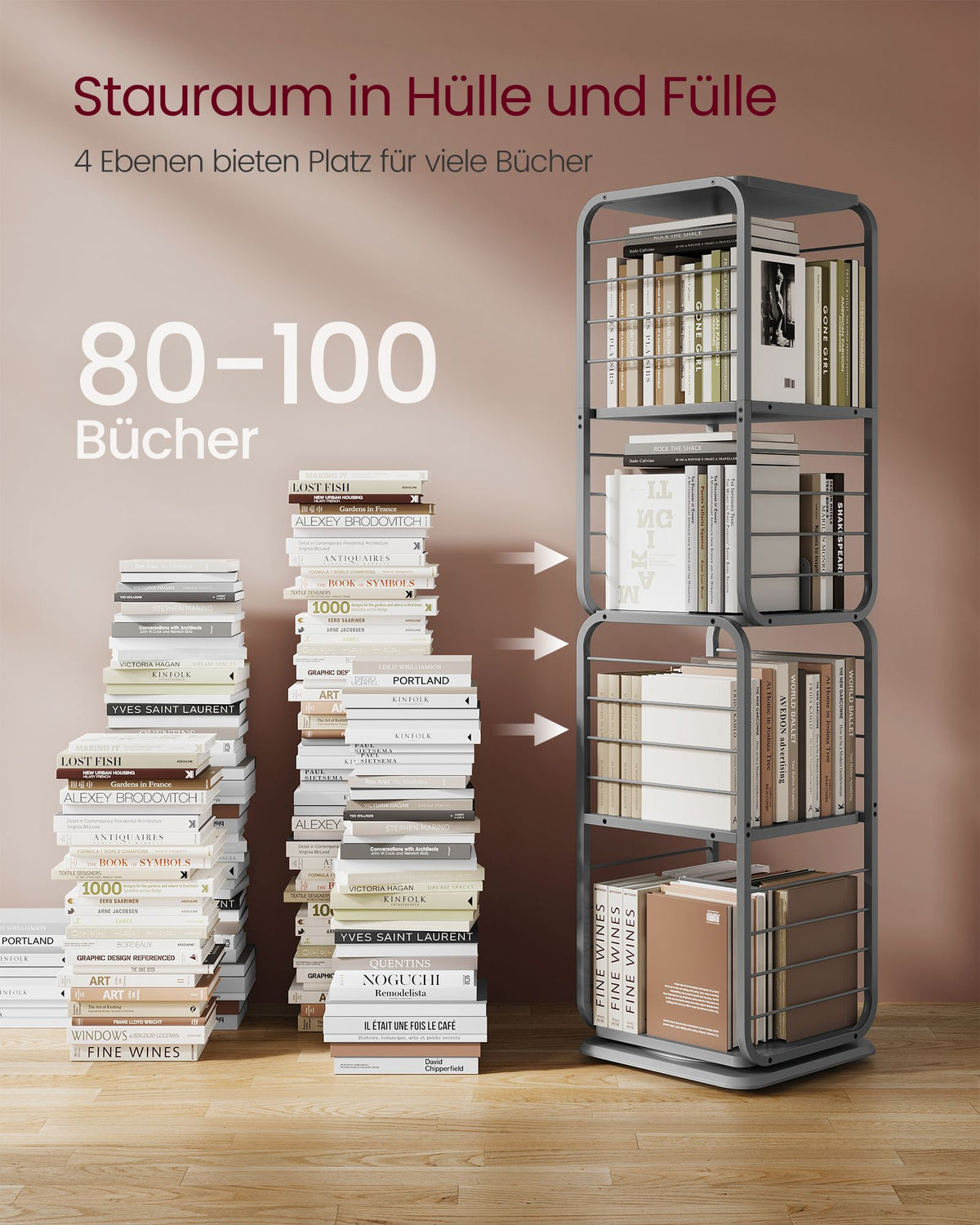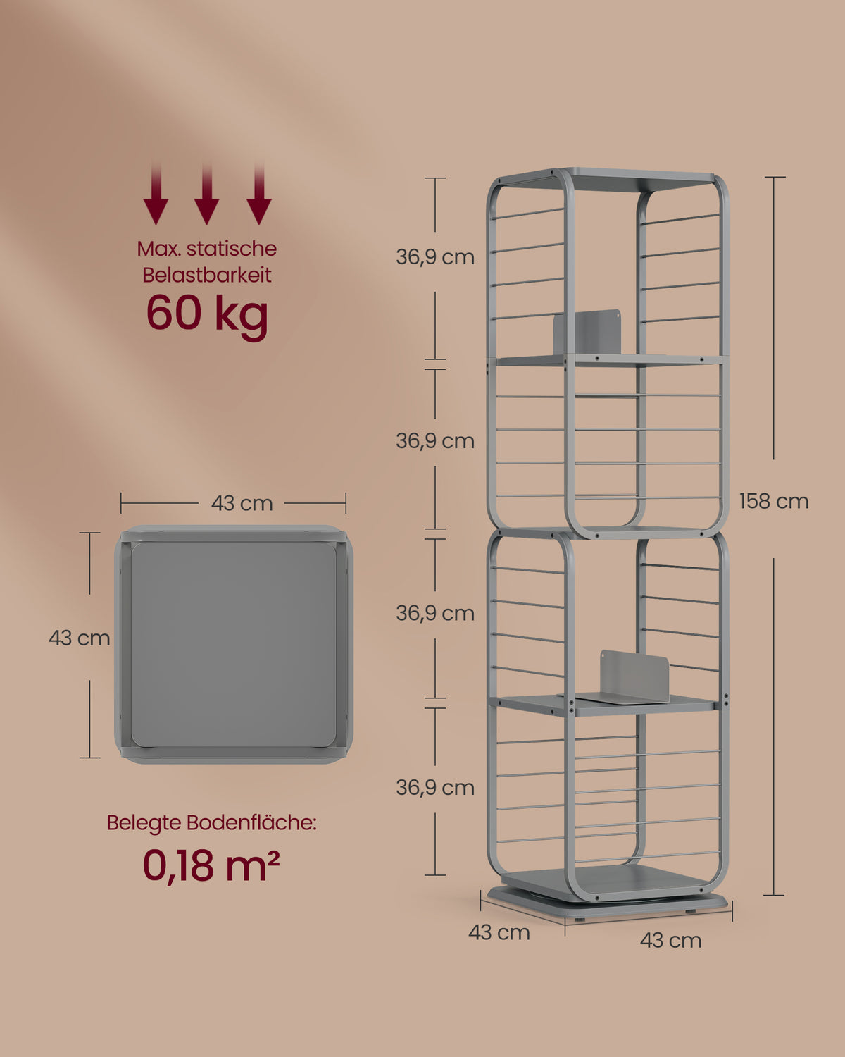 Boekenkast met 4 niveaus en boekensteunen 43 x 43 x 158 cm