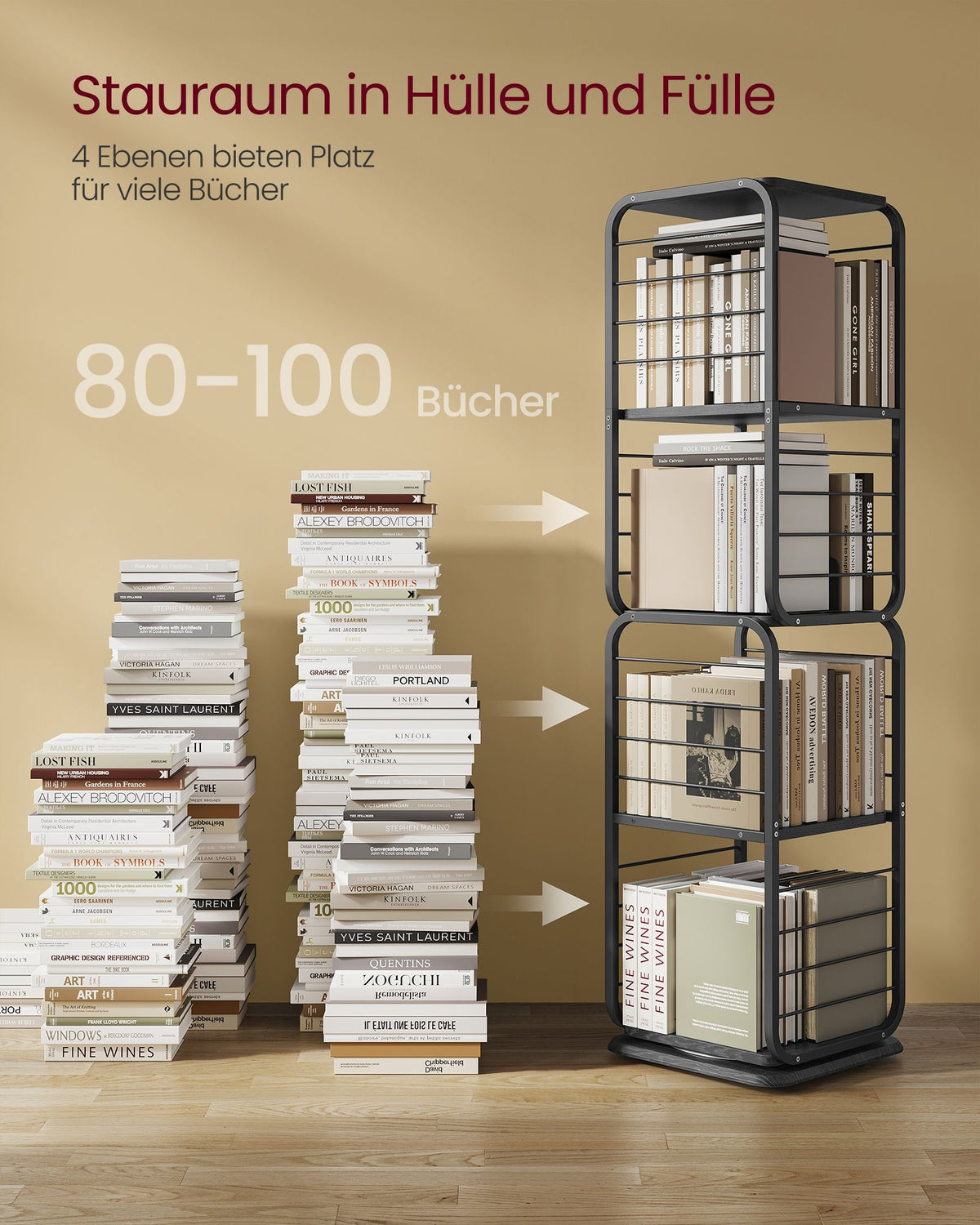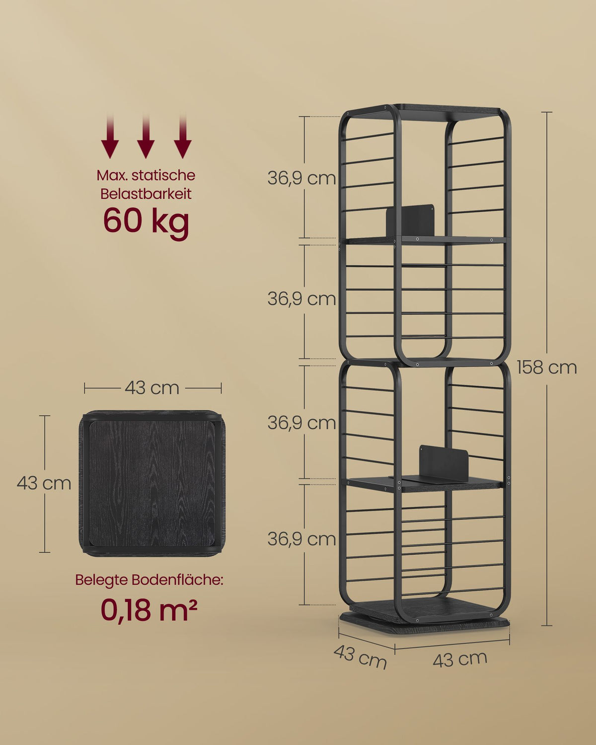 Boekenkast met 4 niveaus en boekensteunen, ebbenhoutzwart en inktzwart 43 x 43 x 158 cm