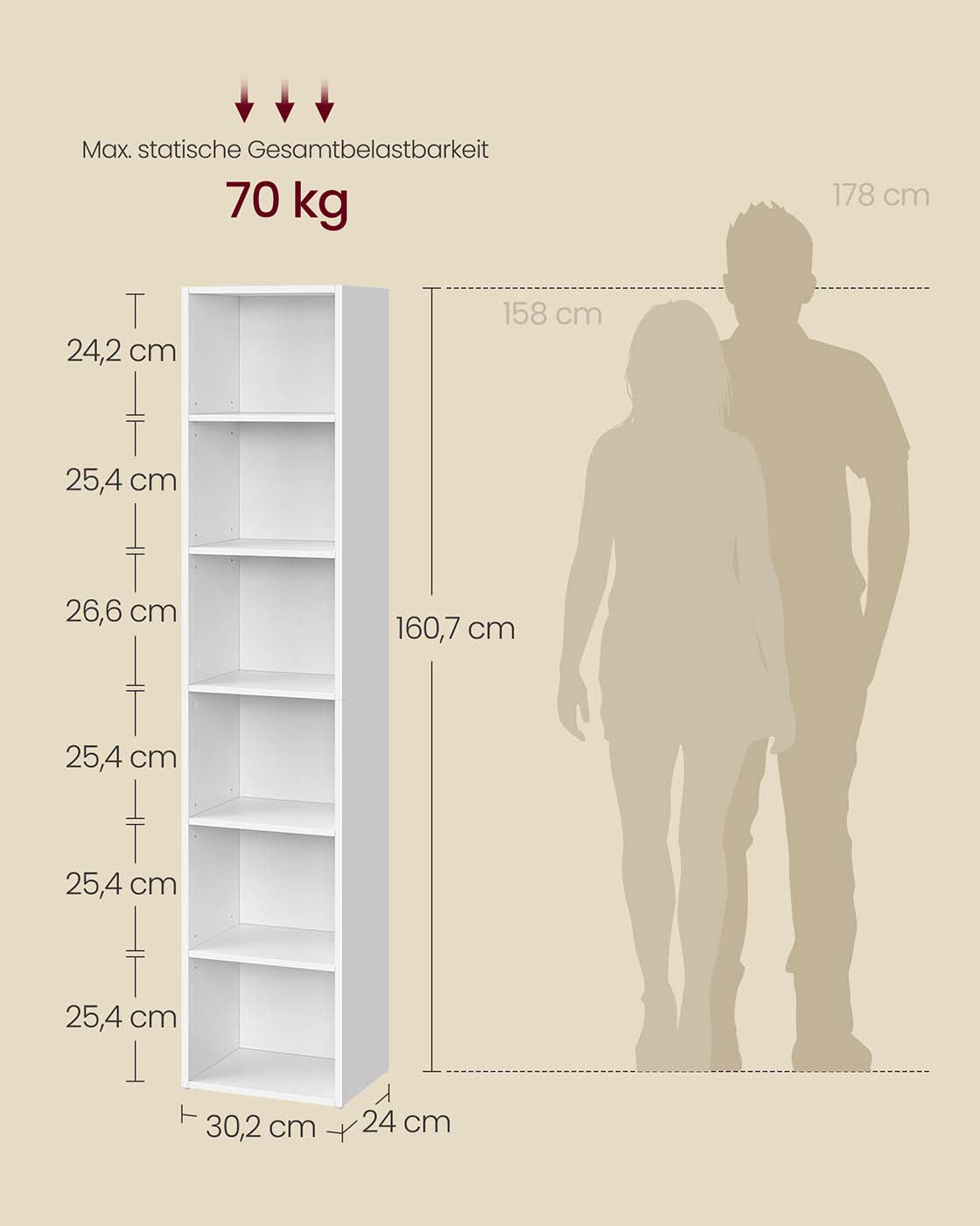 Boekenkast met 6 open vakken 24 x 30,2 x 160,7 cm wolkenwit