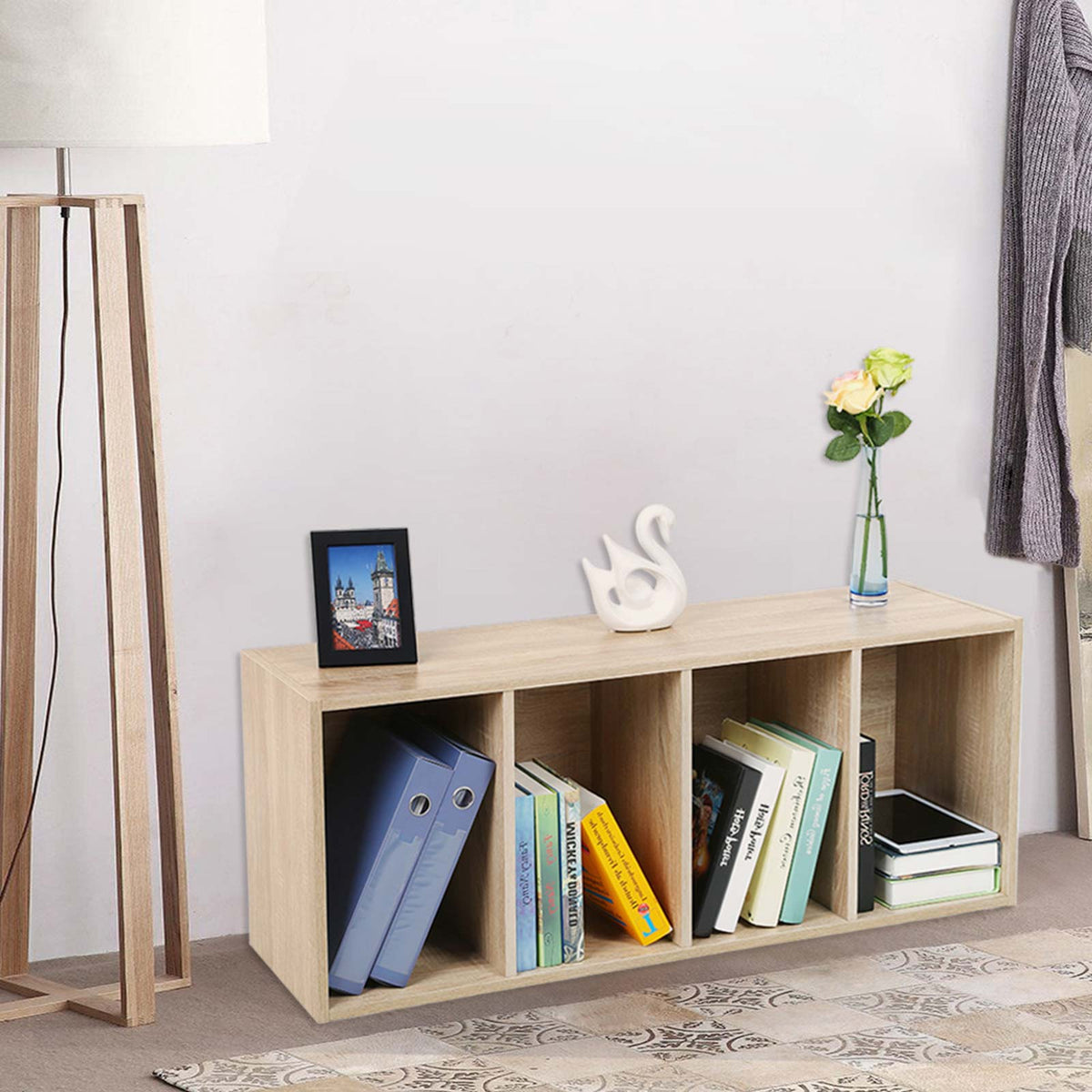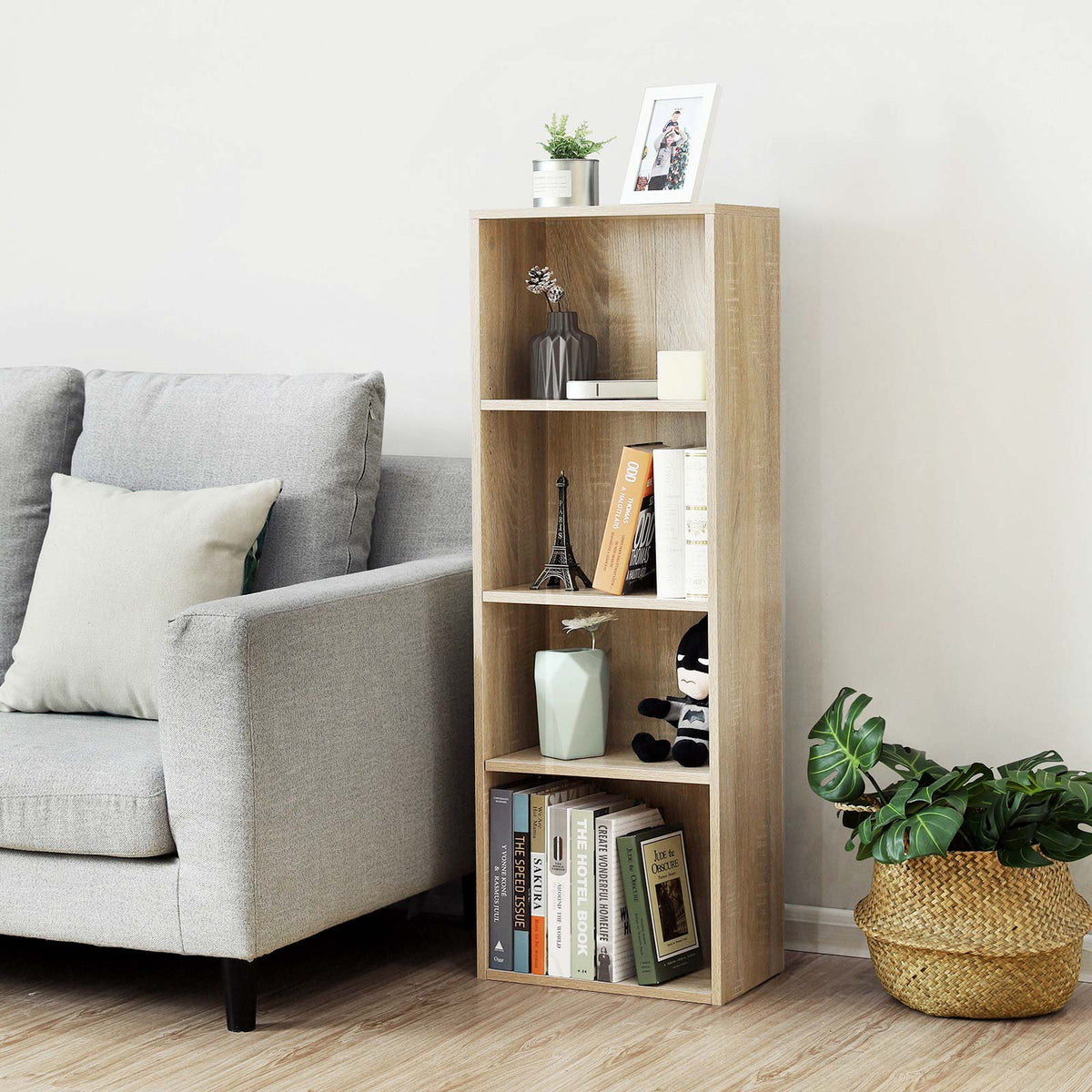 Boekenplank 4 planken houtlook 5 x 24 cm