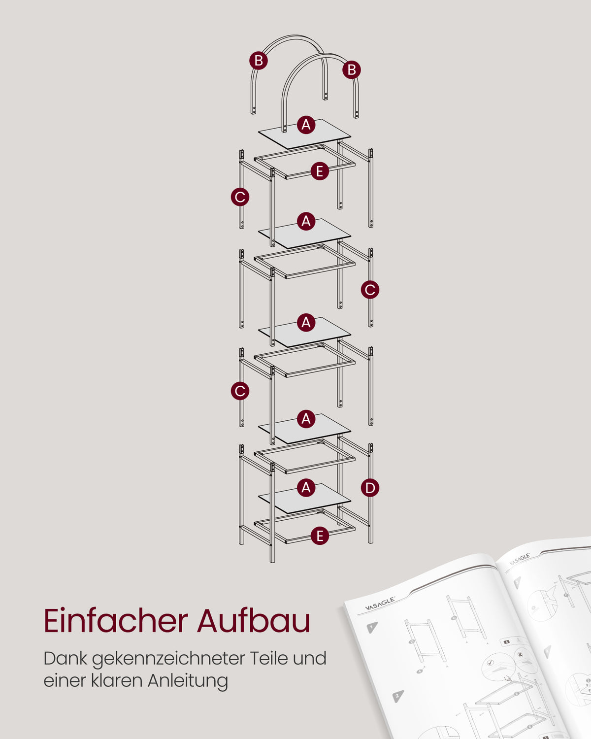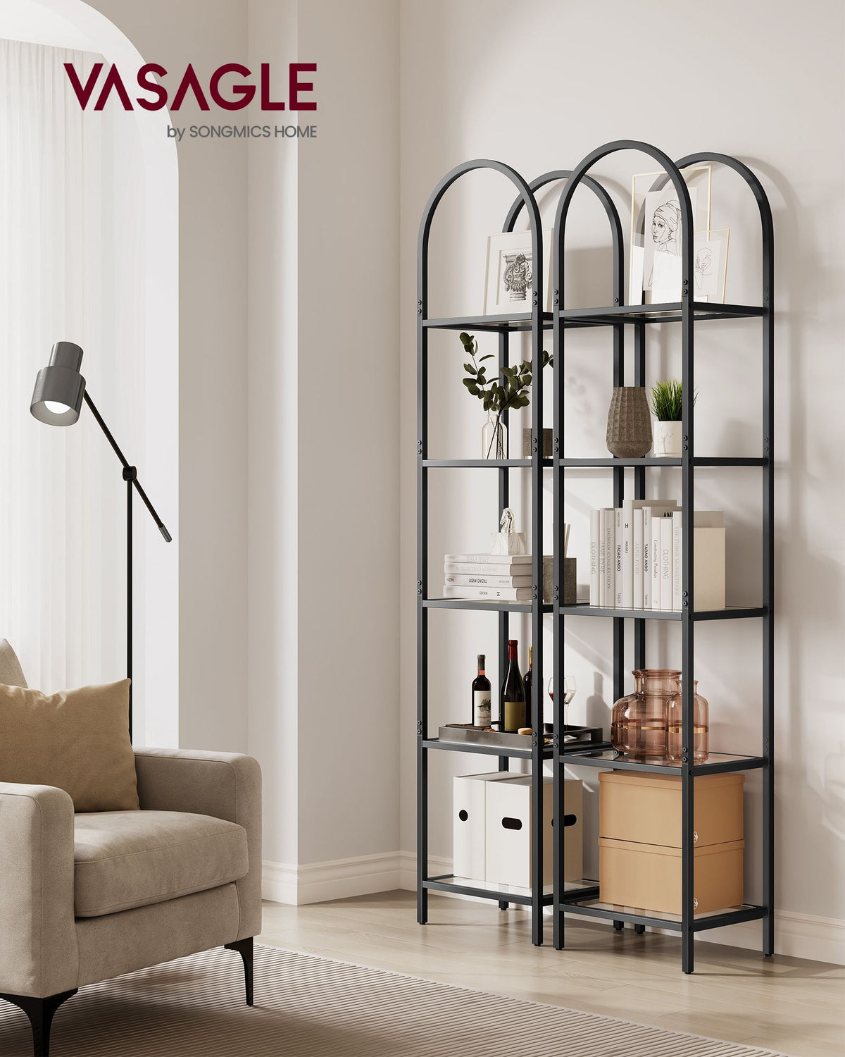 Boekenplank 5 niveaus metalen structuur inktzwart-leigrijs 5 cm