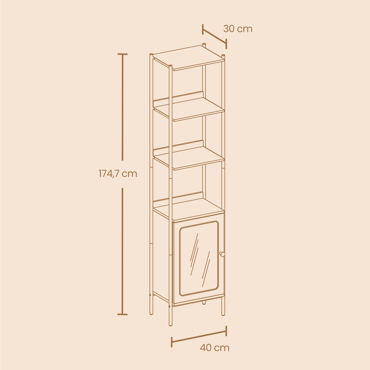Boekenplank 6 niveaus, hoge plank, staande plank 7 cm - LLSB35123W57