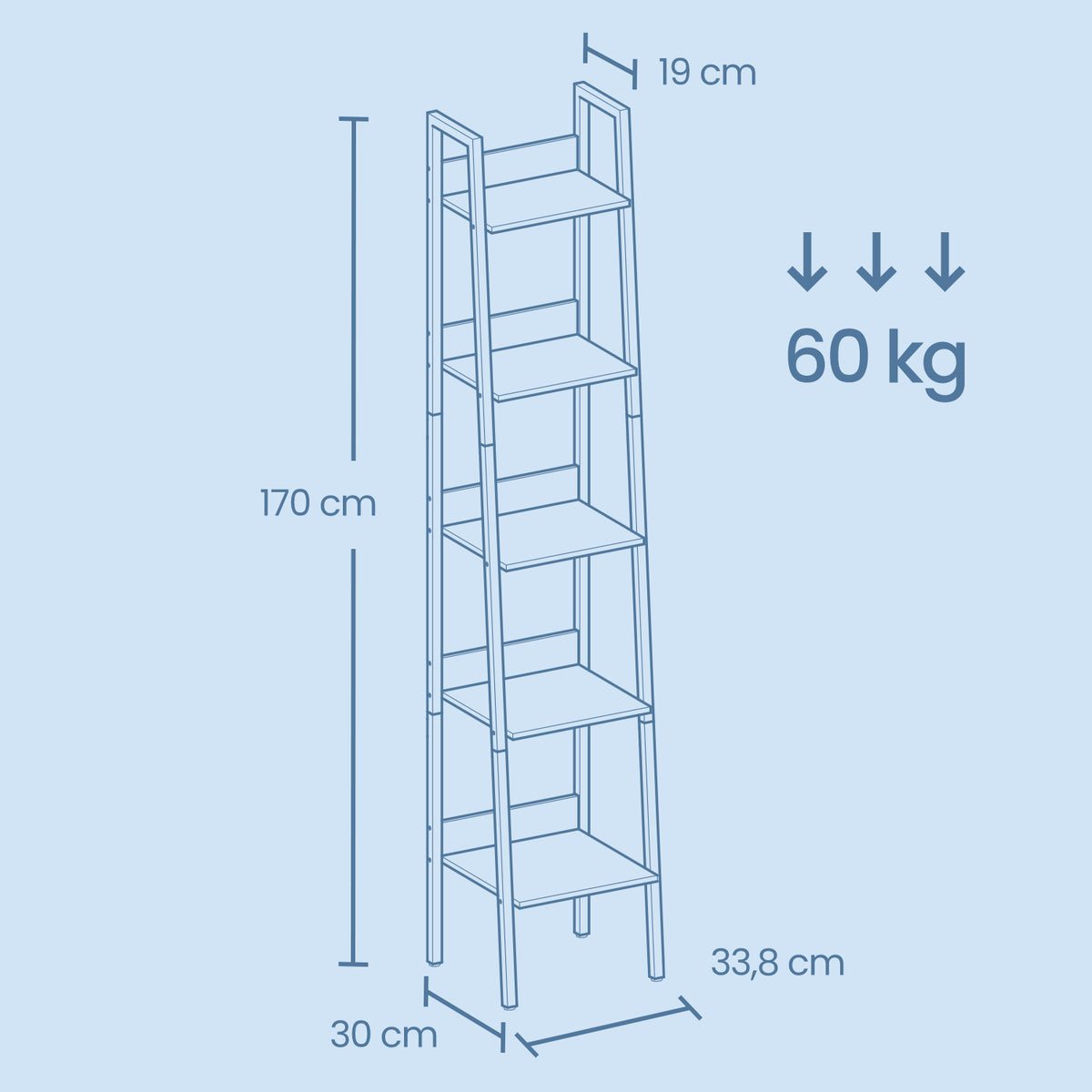 Boekenplank, ladderplank 5 niveaus, smal 8 x 170 cm