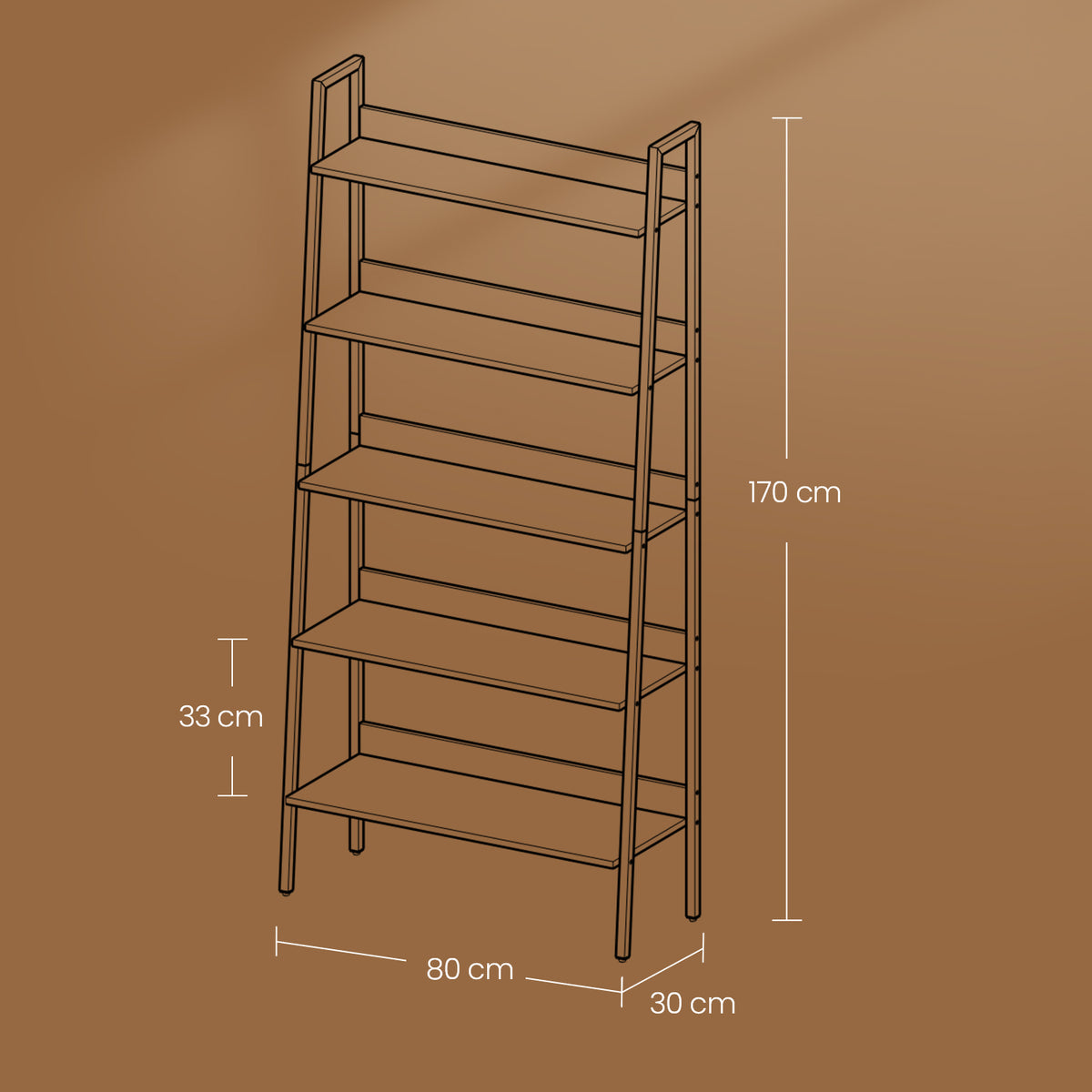 Boekenplank, ladderplank 5 niveaus, smalle plank 30 x 80 x 170 cm - LLSB35129B01
