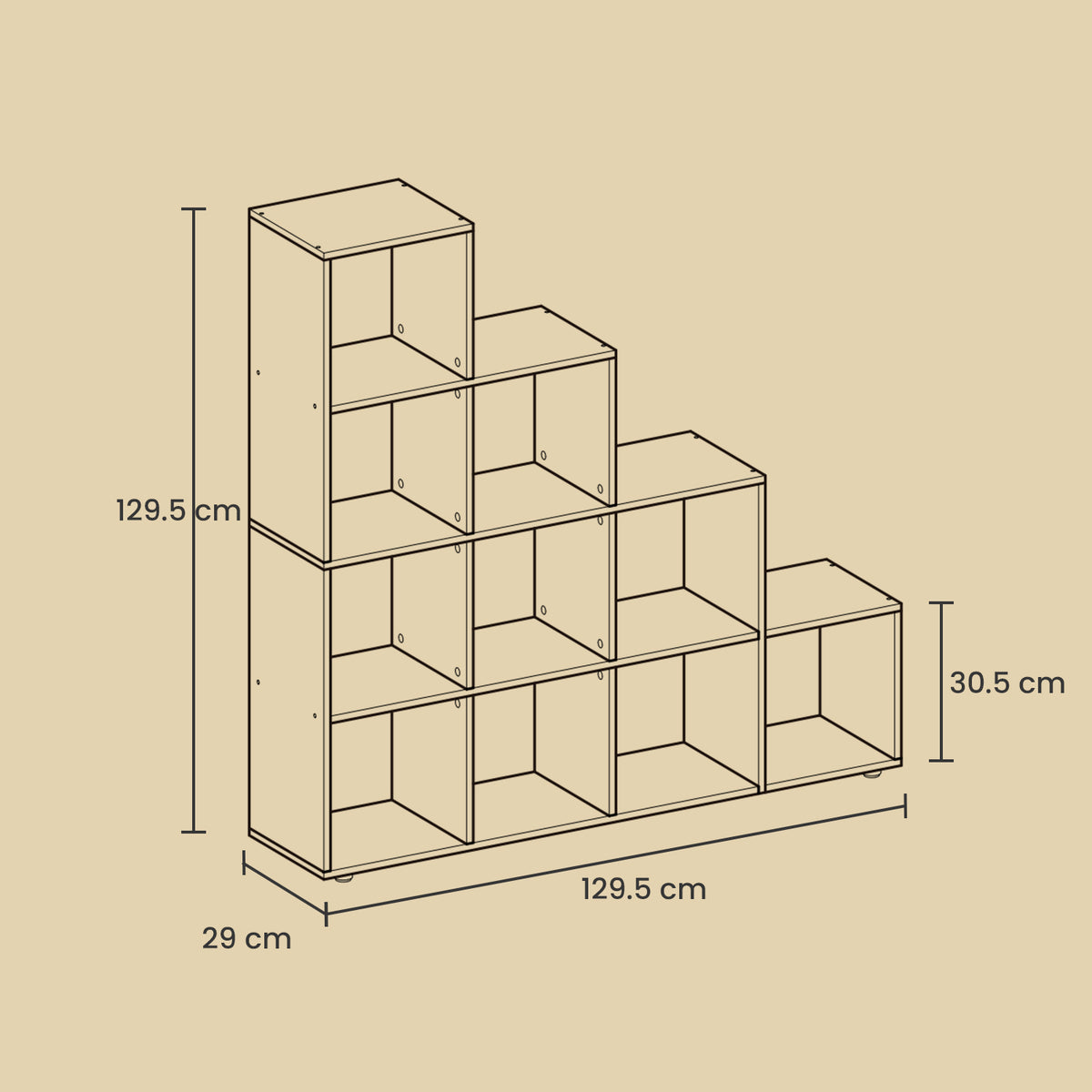 Boekenplank met 10 kubussen 129,5 x 29 cm - LBCB3510BX