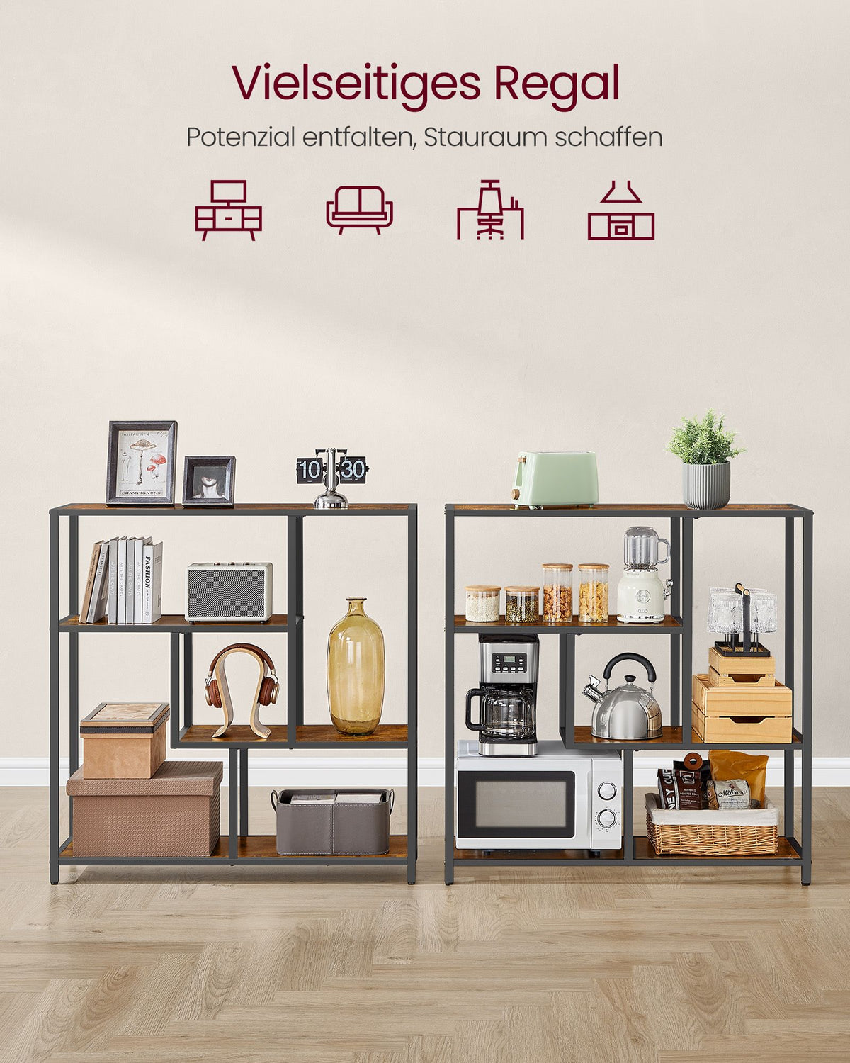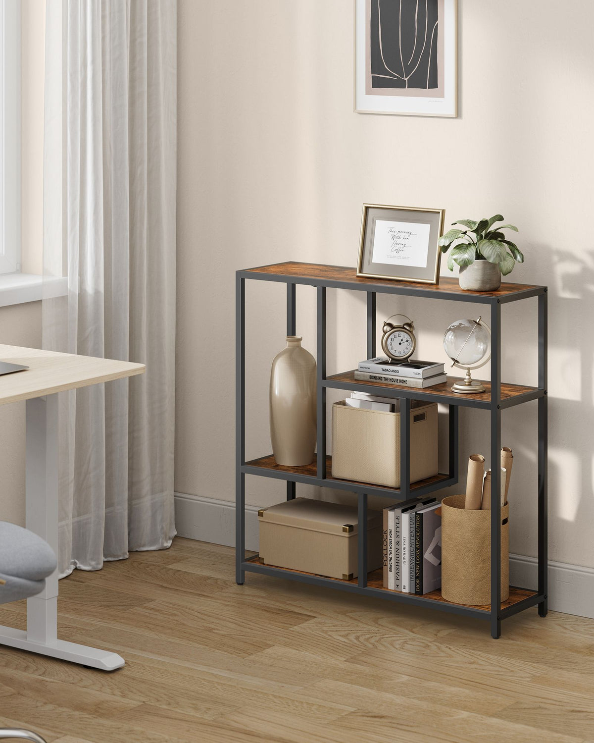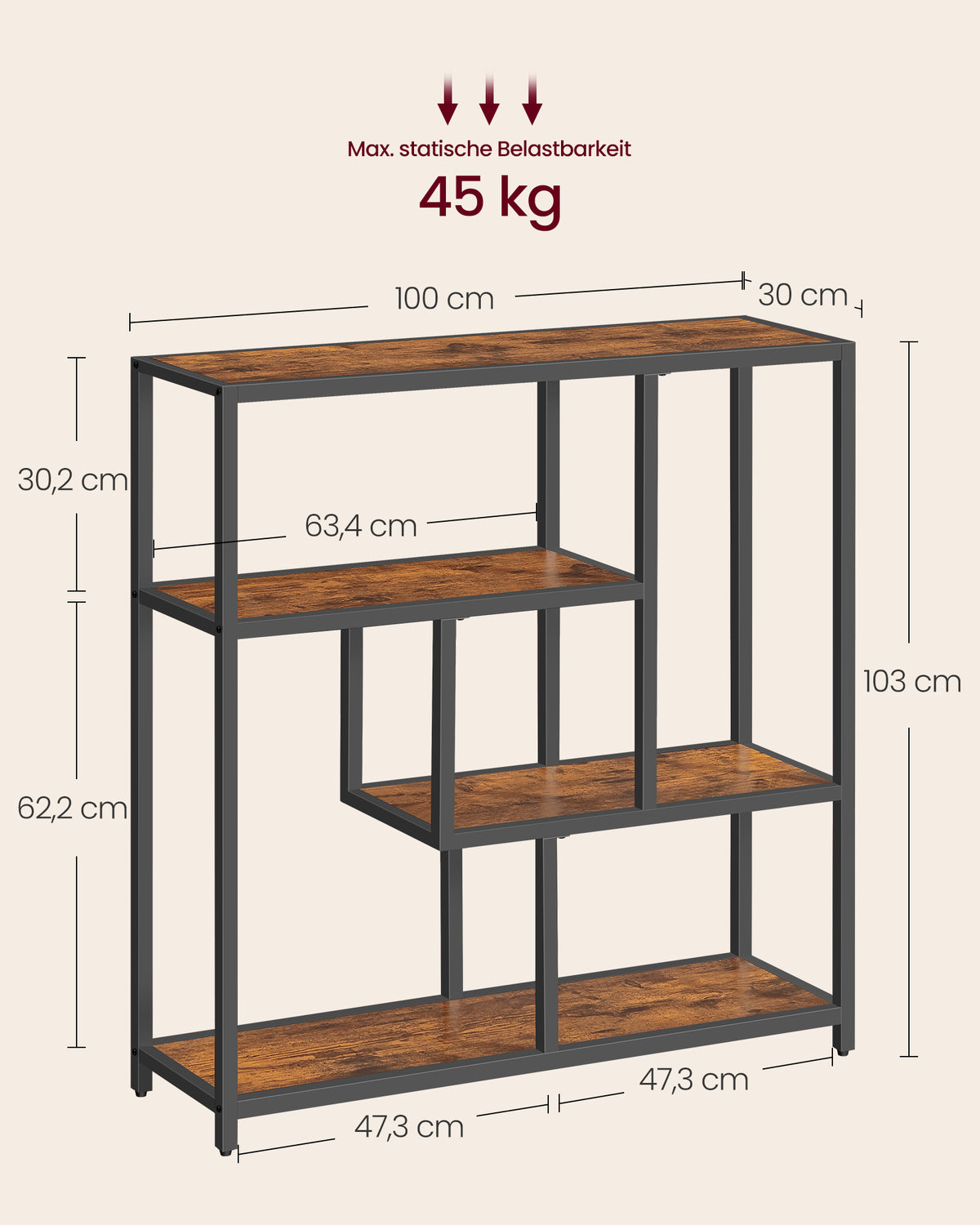 Boekenplank met 4 planken vintage bruin-inkt zwart 30 x 100 x 103 cm