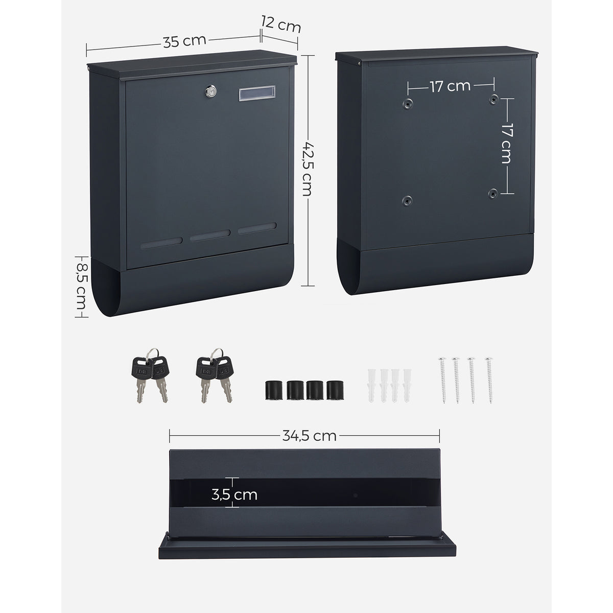 Brievenbus met krantenvak en naamplaatje antraciet 5 cm