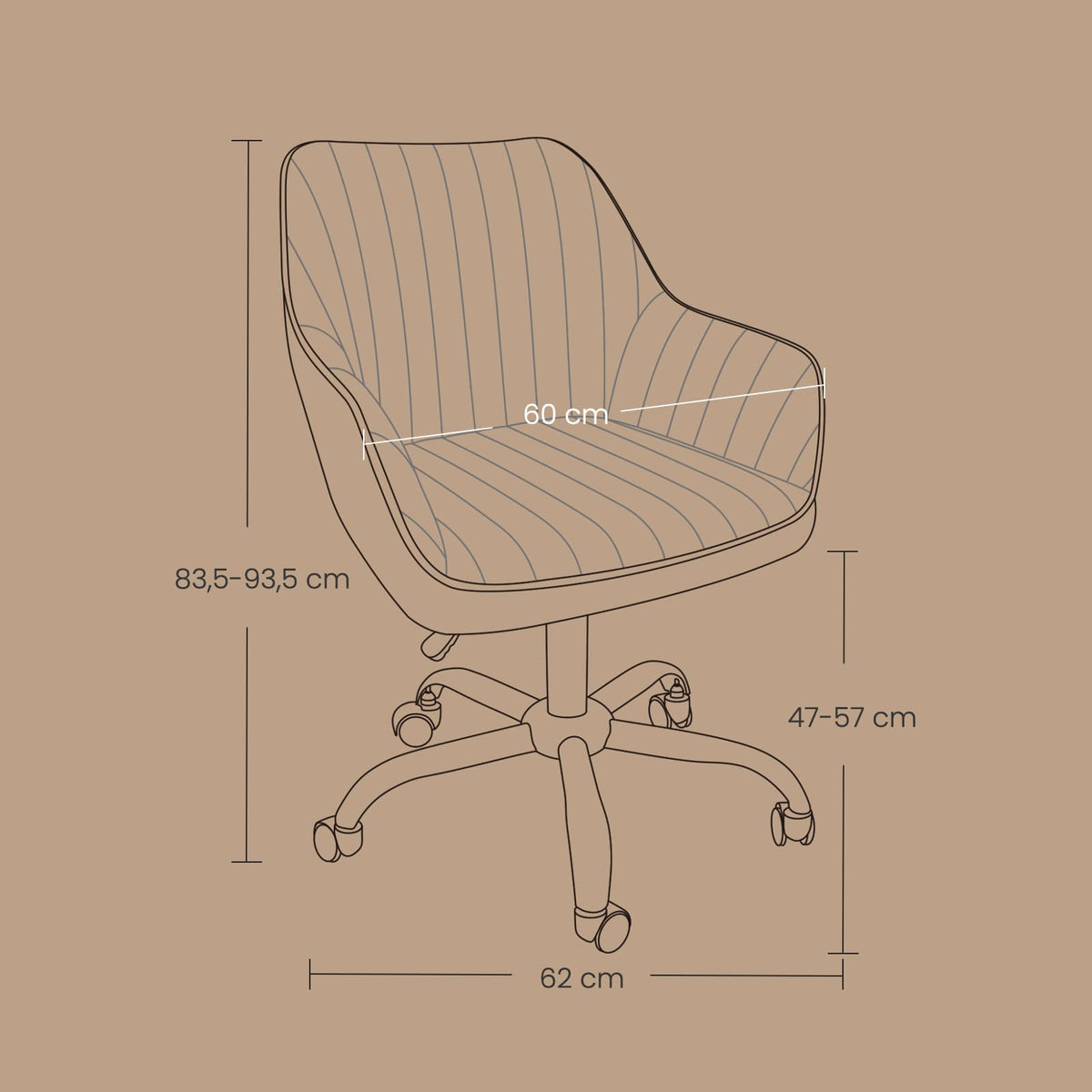 Bureaustoel, draaistoel met fluwelen bekleding, schuimvulling 64 x 62 x 80 cm