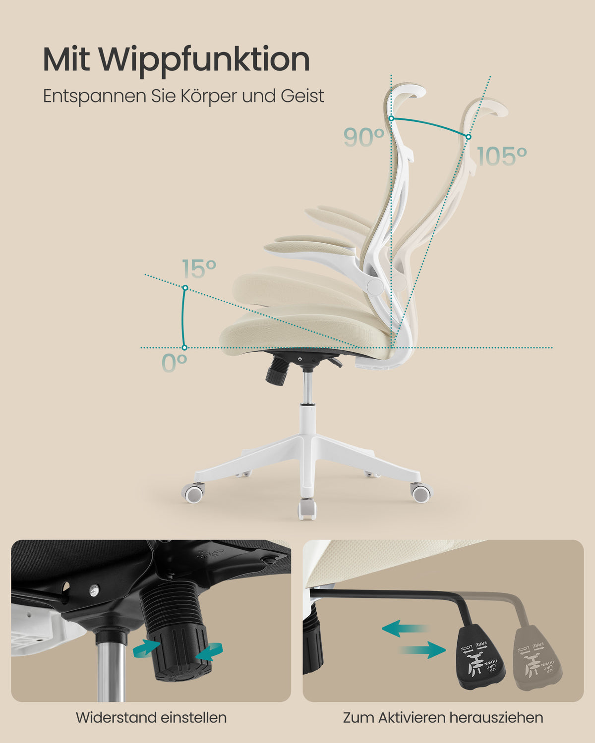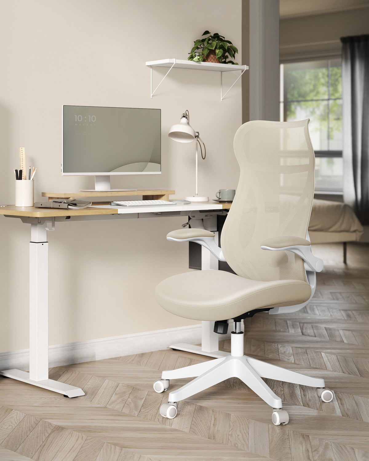 Bureaustoel met rugleuning en armleuningen cappuccino beige