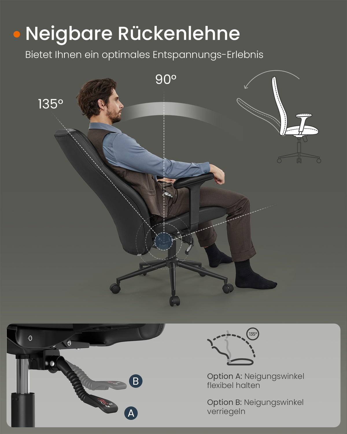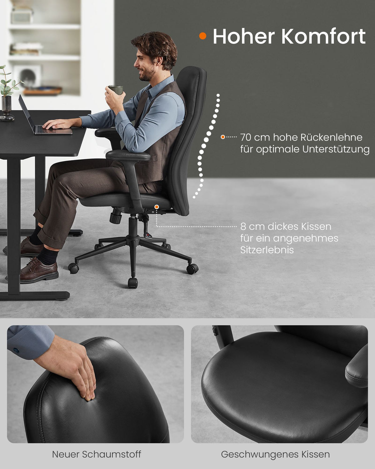 Bureaustoel met verstelbare armleuningen inktzwart 58 cm