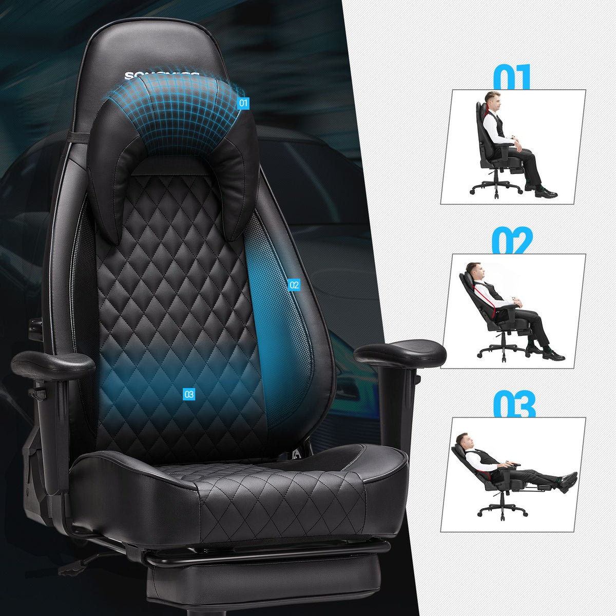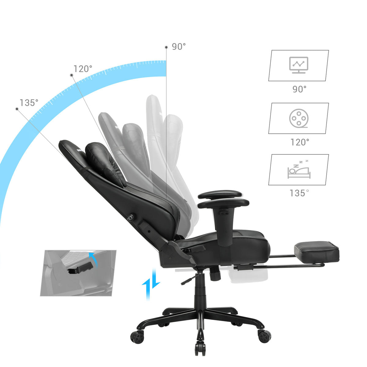 Bureaustoel met voetensteun 132 cm