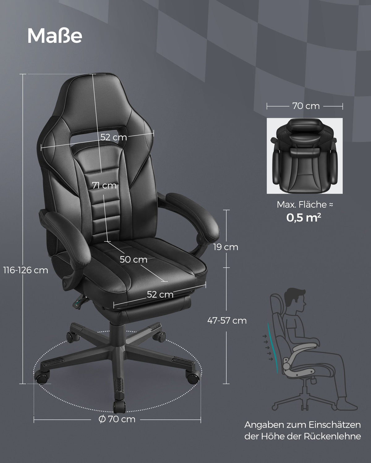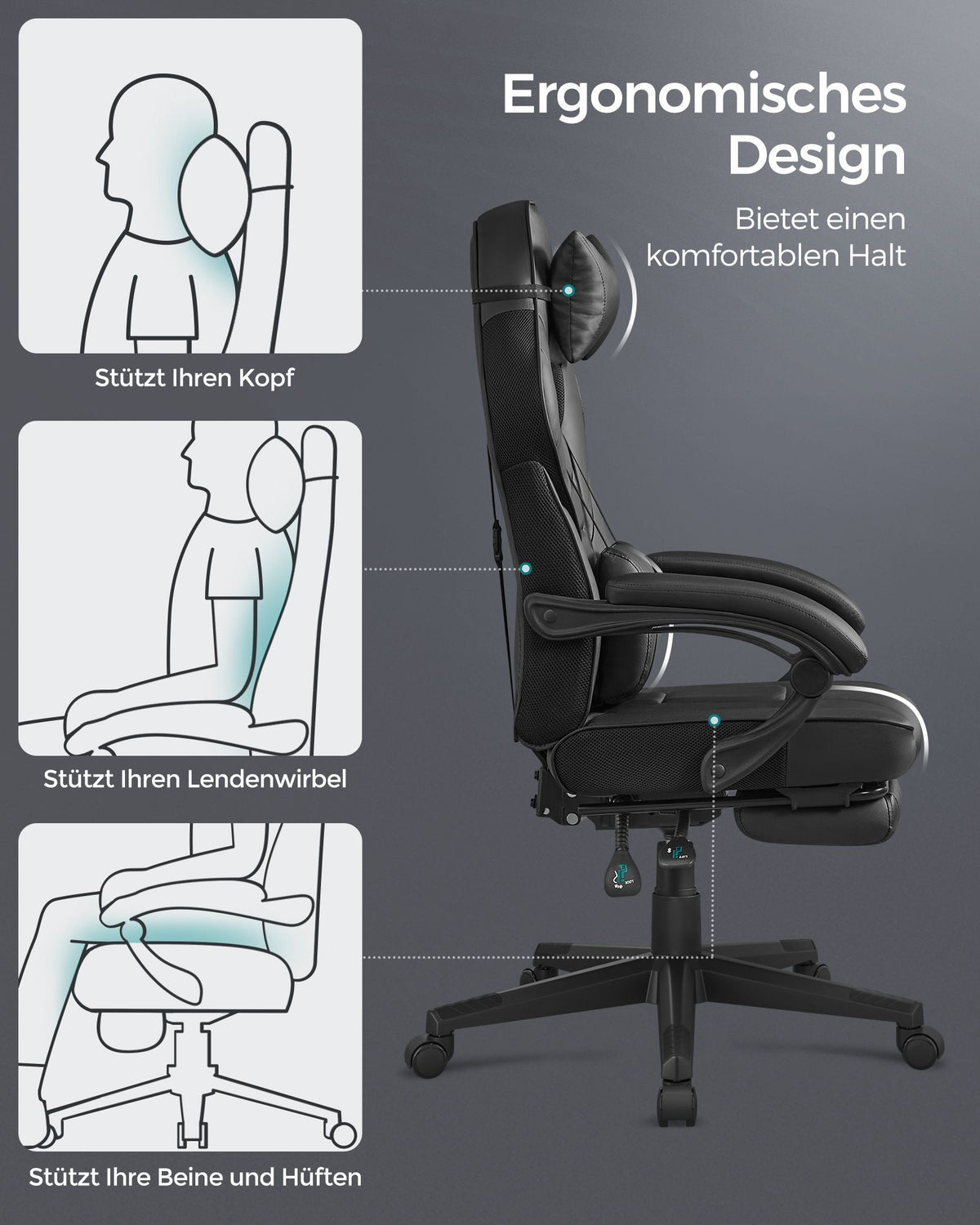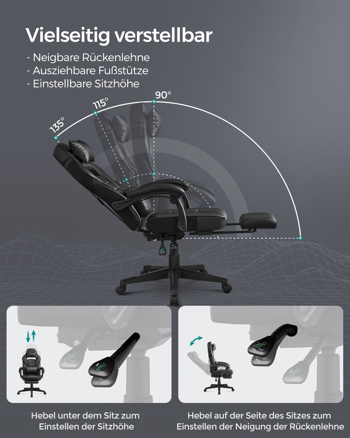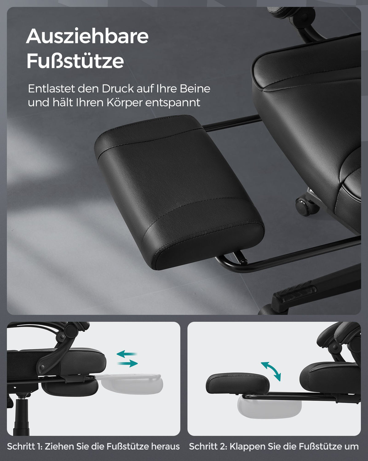 Bureaustoel met voetensteun en lendensteun, belastbaar tot 150 kg