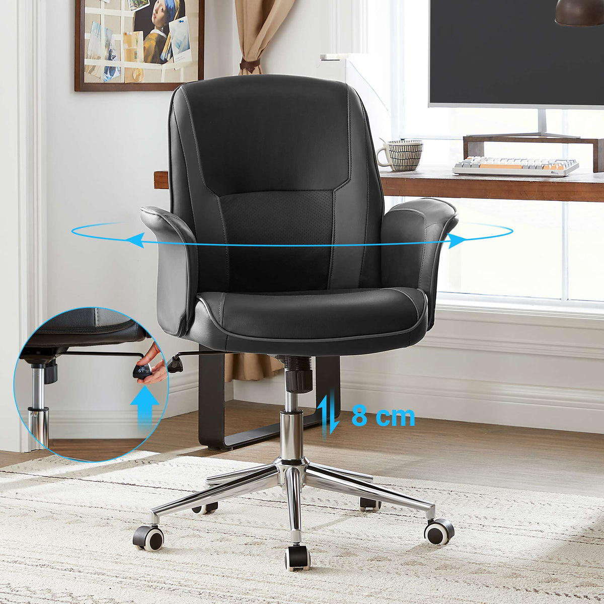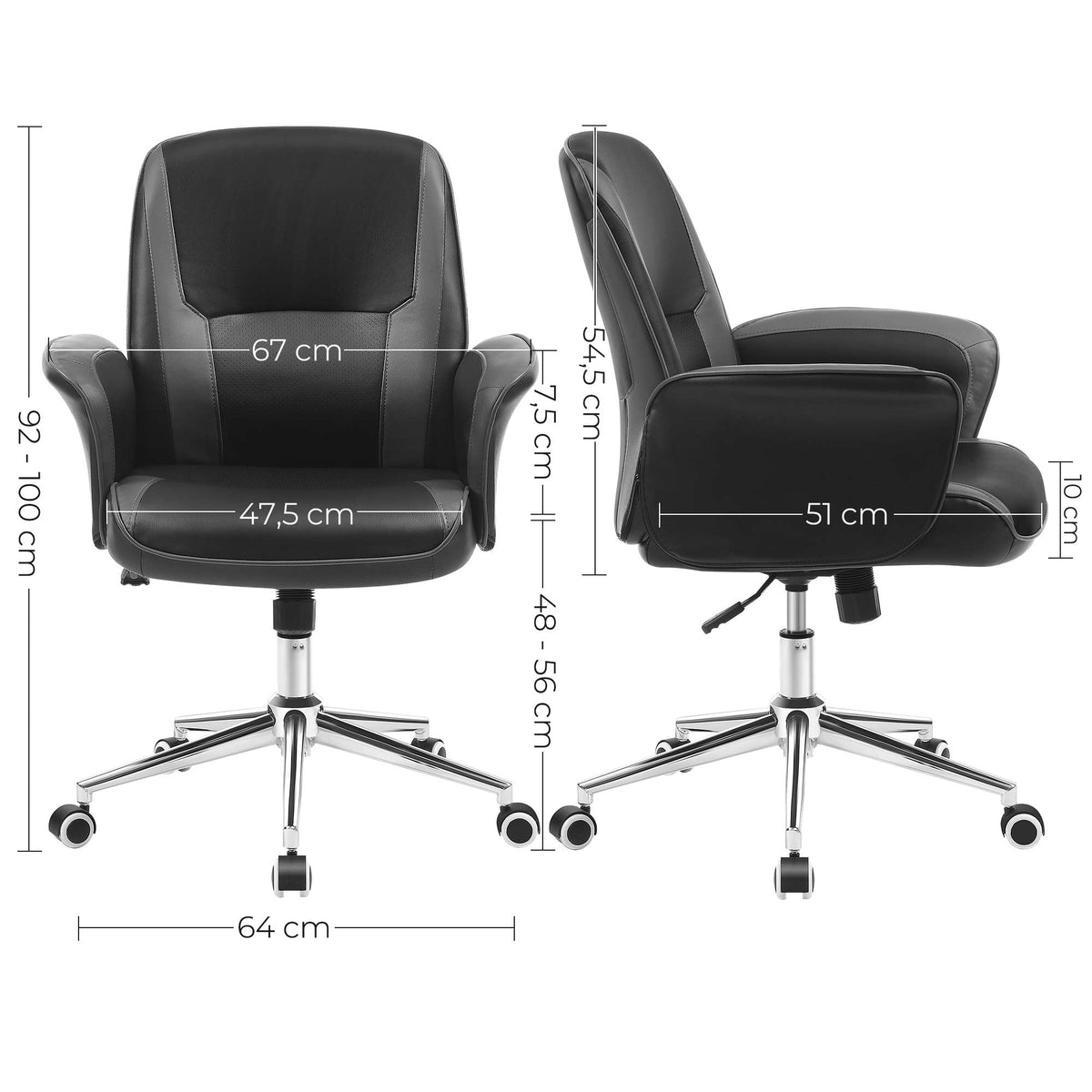 Bureaustoel op wielen zwart-grijs 67 x 64 x 92 cm