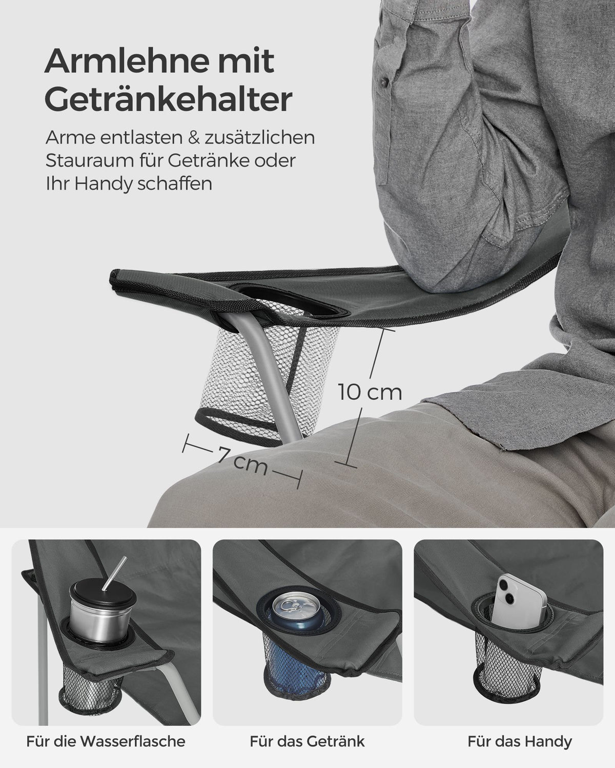 Campingstoelset van 2 met armleuningen draagbaar 52 x 84 x 81 cm