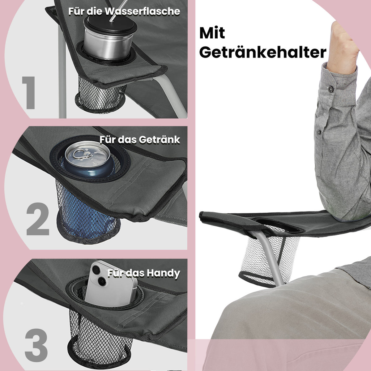 Campingstoelset van 2, opvouwbare stoel voor buiten, met armleuningen 52 x 84 x 81 cm