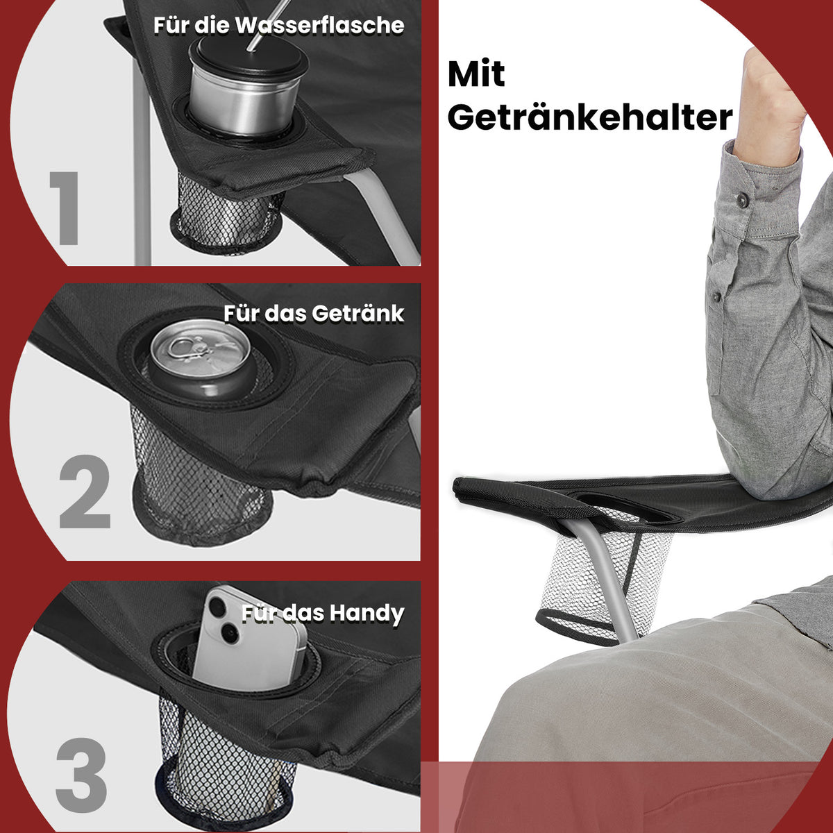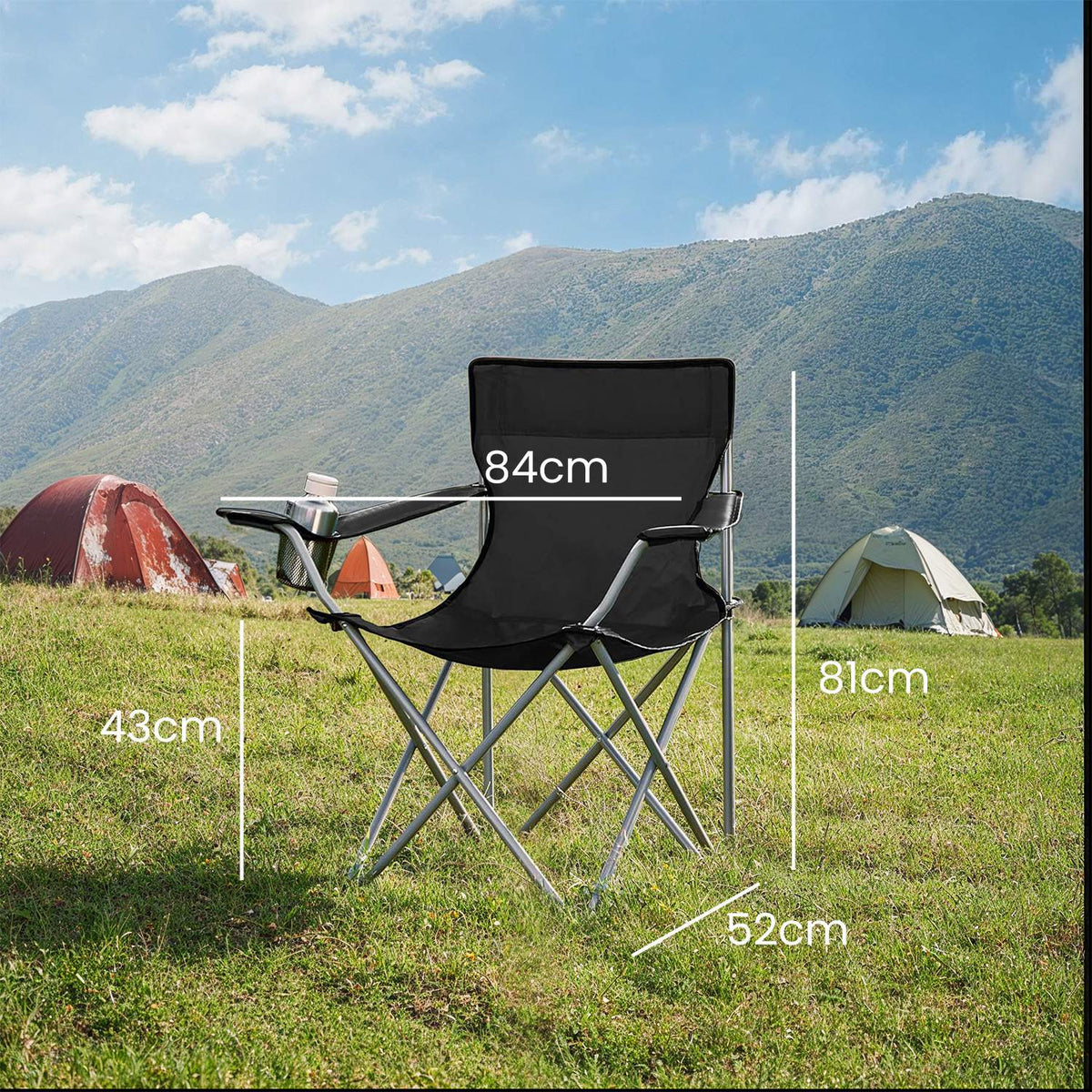 Campingstoelset van 2, opvouwbare stoel voor buiten, met armleuningen 84 x 52 x 81 cm - GCBB3501BK