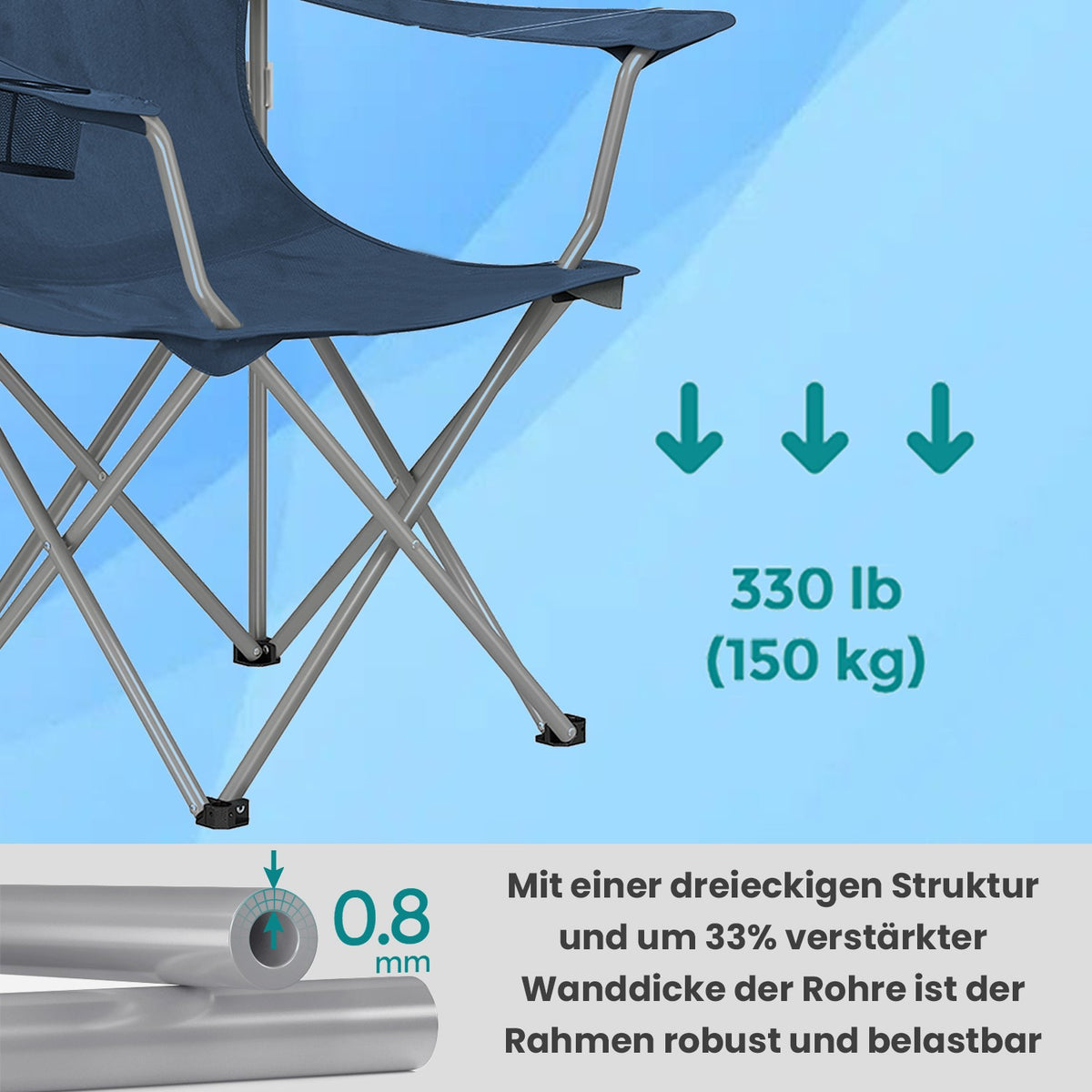 Campingstoelset van 2, visstoel, draagvermogen tot 150 kg 54 x 86 x 97 cm - GCBB35008Q02