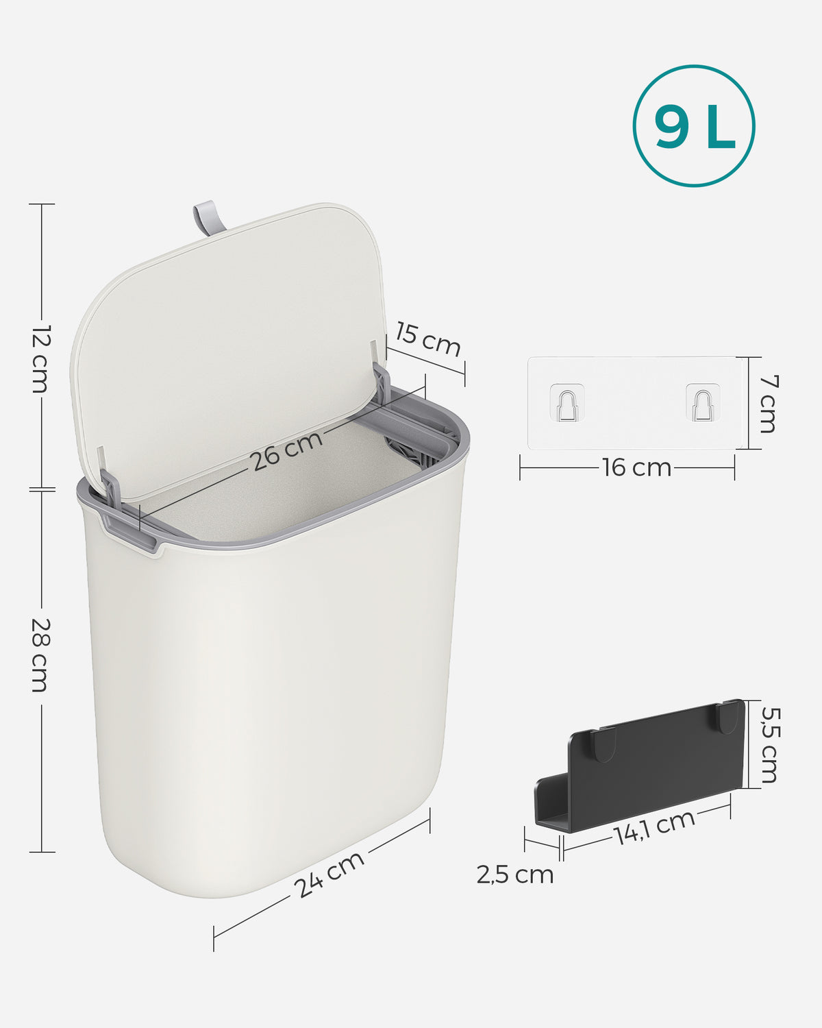 Compostbak 9L wit 26 x 15 x 28 cm - LTB820W9