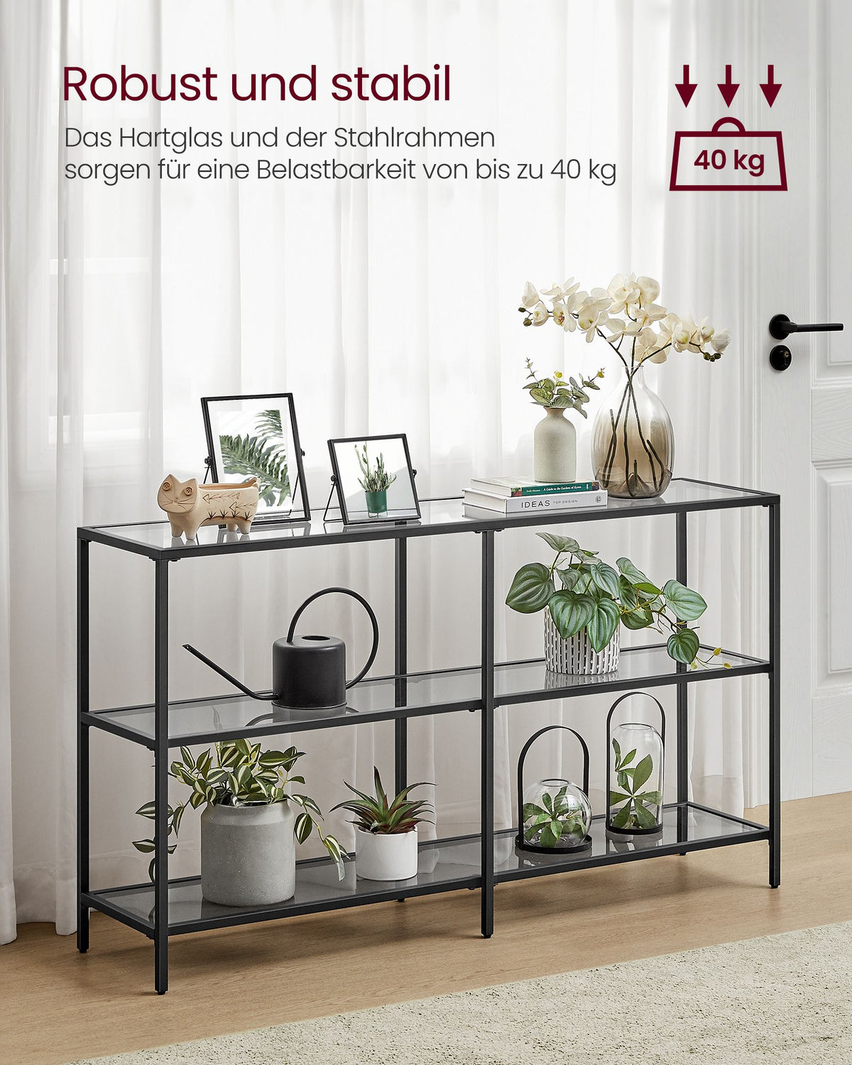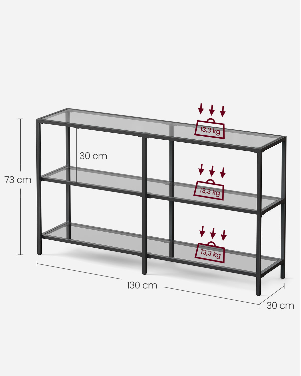 Consoletafel met 3 gehard glazen planken 130 x 30 x 73 cm